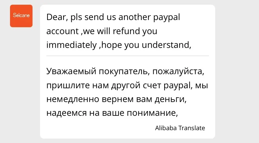 Очень плохой продавец! Долго не отвечали на сообщения после оплаты, товар мне не отправили, возвращать деньги не хотят! Общаться не хотят, служба поддержки алиэкспресс не реагирует на ситуацию! Продавец придумал схему возврата денег через PayPal, но и туда не отправляет!