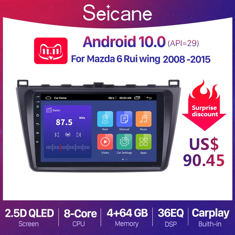 Автомобильный мультимедийный плеер Seicane, 2DIN, Android 10, радио, аудио, GPS, для Mazda 6, Rui wing 2008, 2009, 2010, 2011, 2012, 2013, 2014