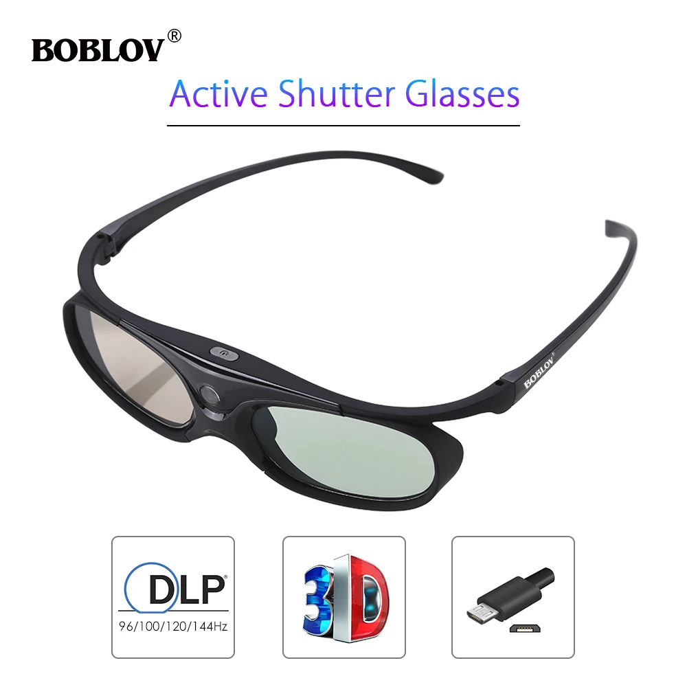 BOBLOV 3D активное стекло затвора для всех DLP проектор 96 Гц/144 Гц USB Перезаряжаемый домашний кинотеатр для BenQ Dell Acer смарт-очки
