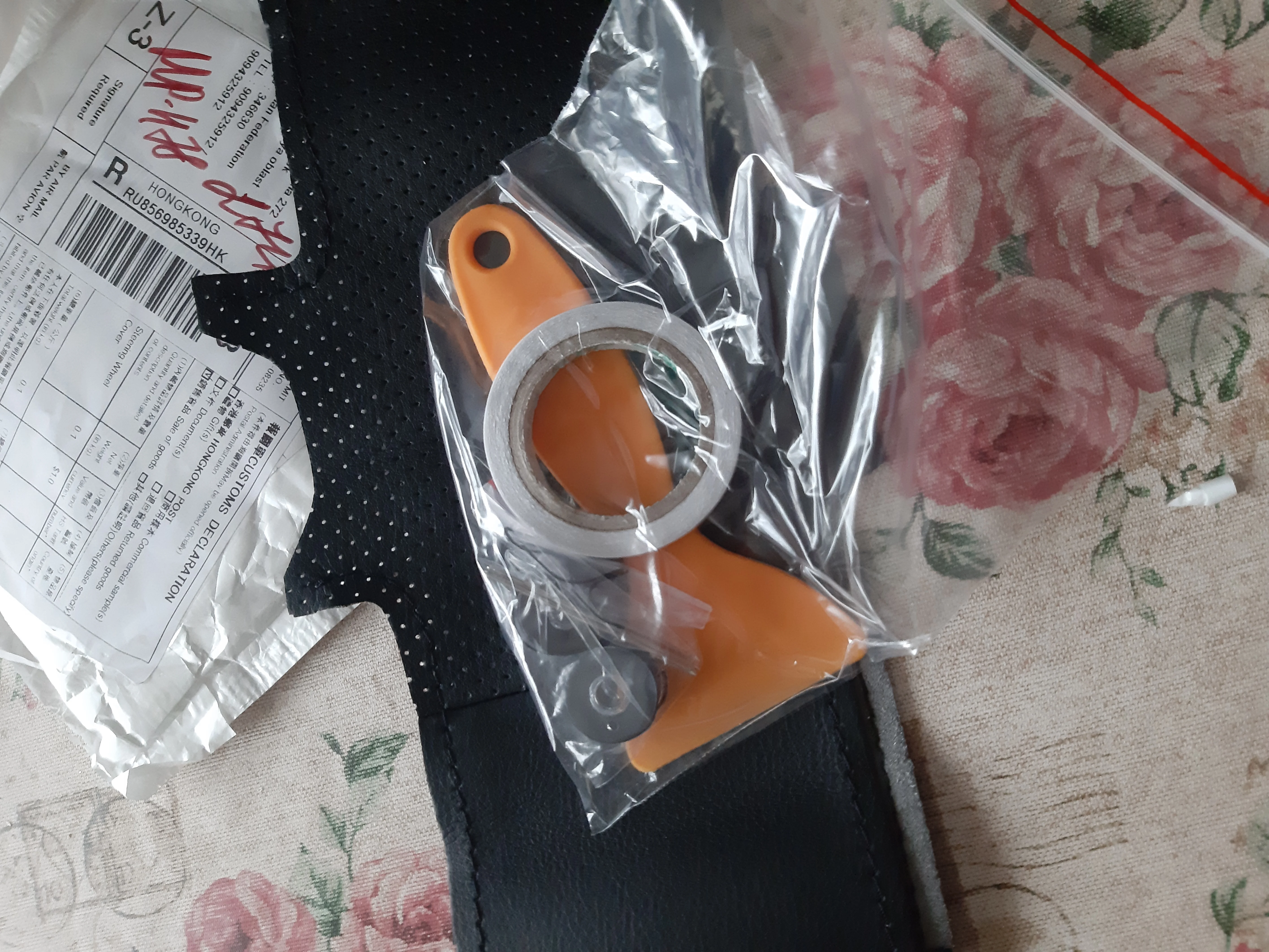 Посылка дошла до Тамбова за 12 дней. Пакет маленький, инструкция на английском. В комплекте двусторонний скотч, пластиковая лопатка, 2 катушки ниток, 2 иглы и сам чехол. Про качество пока не могу ничего сказать - установлю на руль - дополню отзыв.