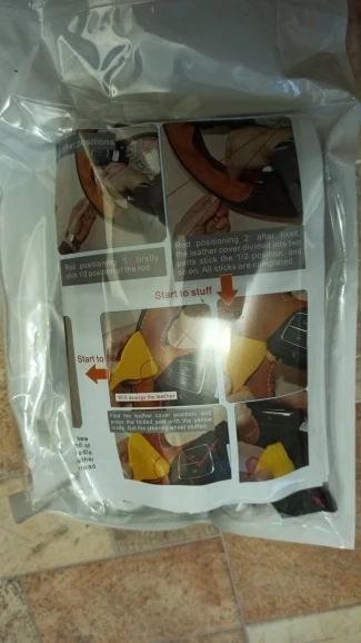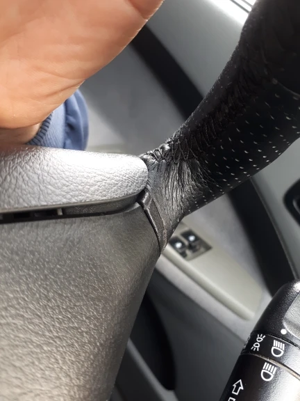 Заказ пришел во за 7 дней, к оплетке есть замечания, на верхние спицы не хватает материала, как я не пытался натянуть его не хватает, с нижними проблем нет. У меня пластиковый руль, возможно на заводском кожаном таких проблем нет. Смотрится четко. Для удобства лучше снять подушку.