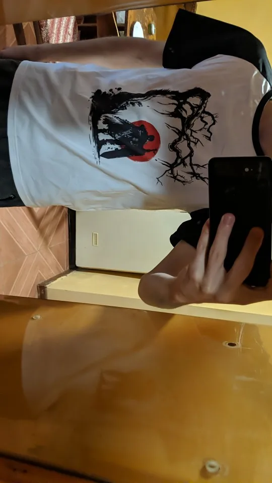 Хороший продукт, он очень удобный, хотя и не хлопок, приятный на ощупь и я не знаю, как сильно прозрачный, как я думал. Единственная деталь-печать, на расстоянии она выглядит великолепно, но если вы очень близко, вы можете сказать, что она немного пикселирована. Я заказал на 3 размера больше для мексиканского L, и кажется, что это выглядит хорошо. Он также прибыл на несколько дней раньше, чем ожидалось, в Мексику.