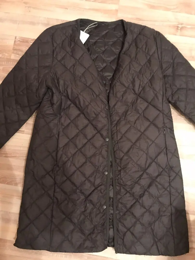 Доставка в Санкт-Петербург быстрая 2,5 недели. На мой 46 р. надо было брать xl ,xxl великовато. Брала под пальто,но это не чёрный цвет,скорее графитовый. На фото видно пальто чёрного цвета,курточка совсем не чёрная. Тоненькая,легкая,нитки торчат по краю. Как самостоятельную вещь не рекомендую.