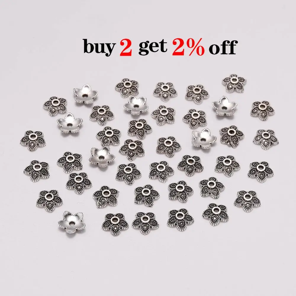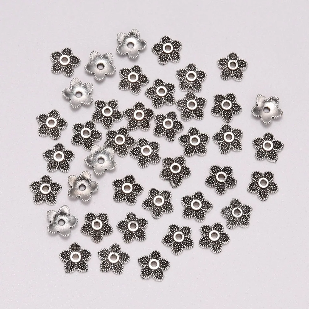 20 шт./лот 7 мм 5 лепестков цветок Торус бусины античного серебряного цвета цветок Свободные Скрап Конец бисера Крышка для DIY ювелирных изделий