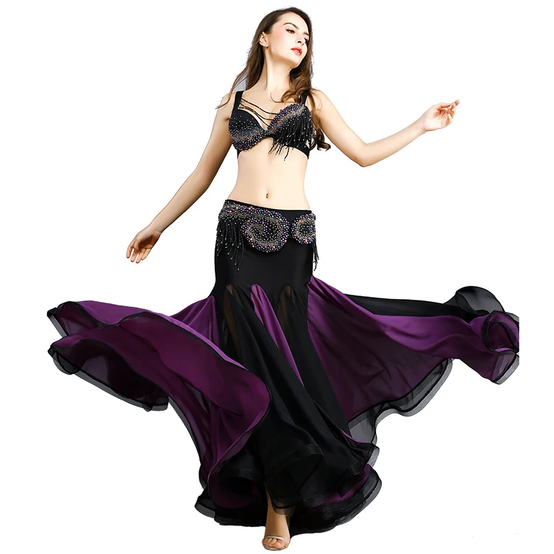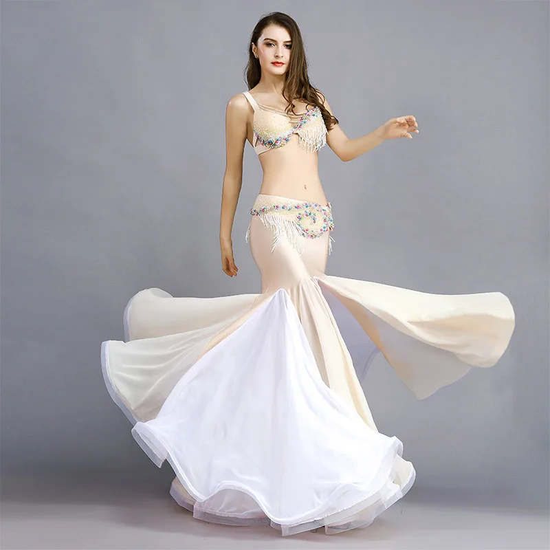 Женская Восточная одежда для танца живота, комплект из бюстгальтера и юбки рыбий хвост, платье для танца живота