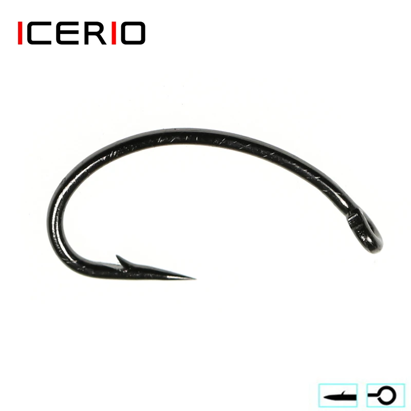ICERIO 100 шт. крючок для вязания мух Нимфа Жук креветки Скад куколки личинки Caddis мухи для рыбной ловли крючков #8 #16
