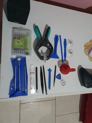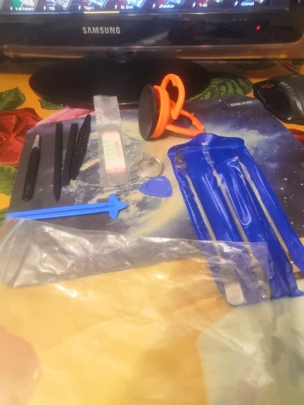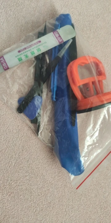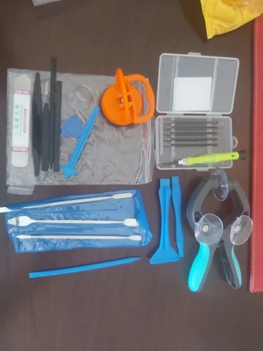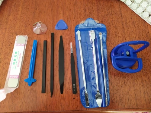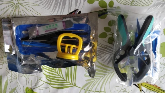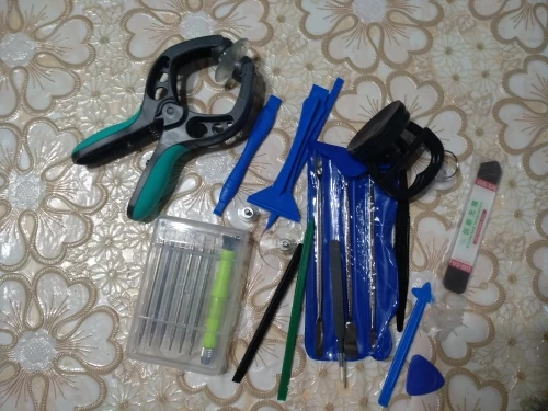 Весьма хороший набор для тех, кто иногда разбирает телефоны, планшеты и прочую технику себе и друзьям, аккумулятор поменять или экран, например. Оранжевая большая присоска очень хорошо держится на экране. Струбцина немного хуже. Металлические лопатки крепкие, от усилий не гнутся. Но мне кажутся слегка толстоватыми, не везде подлезть получится. Отвертка игрушечная - в ней цанговый зажим пластиковый, первый раз такое вижу.