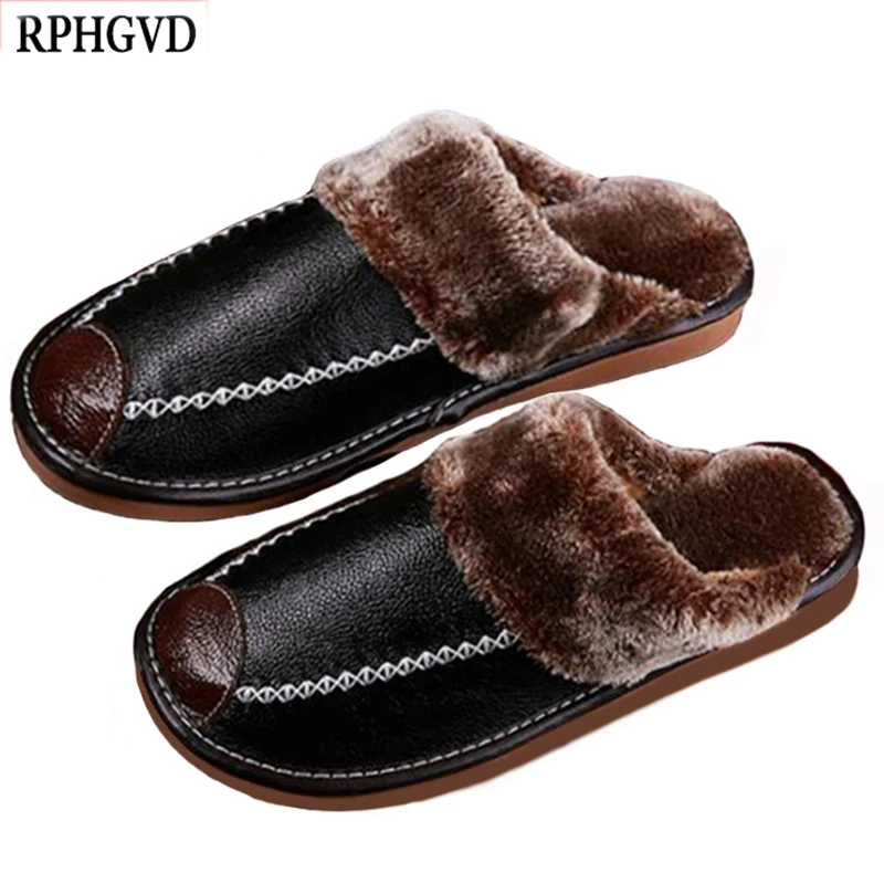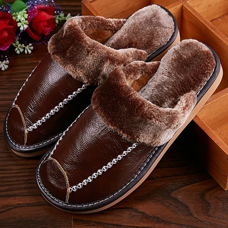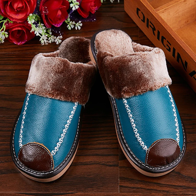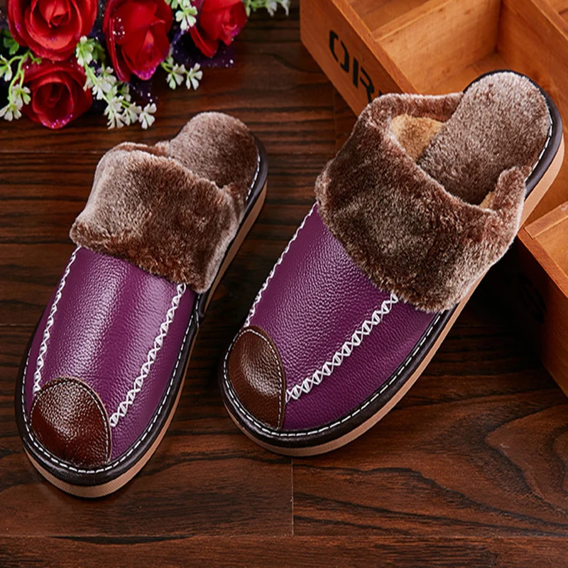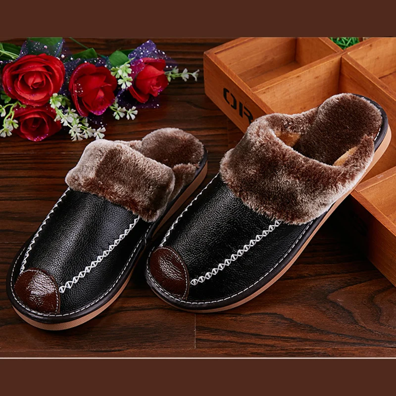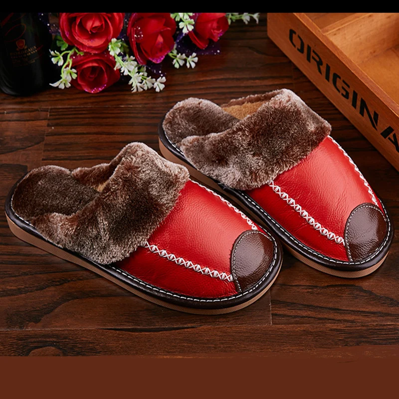 2018 г., теплые кожаные тапочки из хлопка зимние мужские и женские домашние кожаные тапочки домашние тапочки на толстой подошве