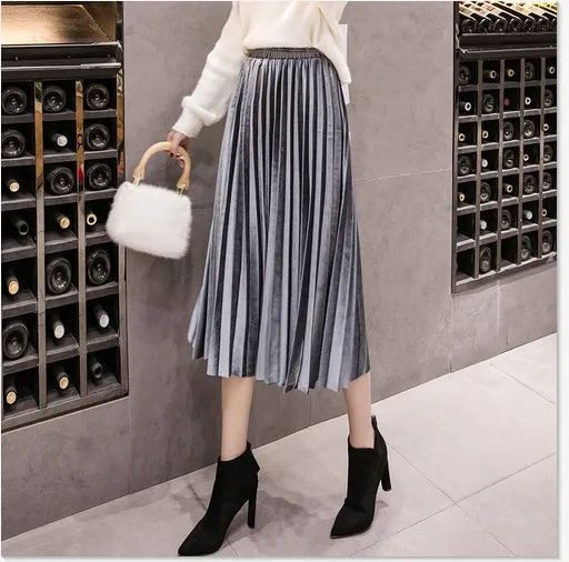 2020 осенне-зимняя бархатная юбка с завышенной талией, обтягивающие длинные плиссированные юбки с эффектом металлик, размера плюс Saia