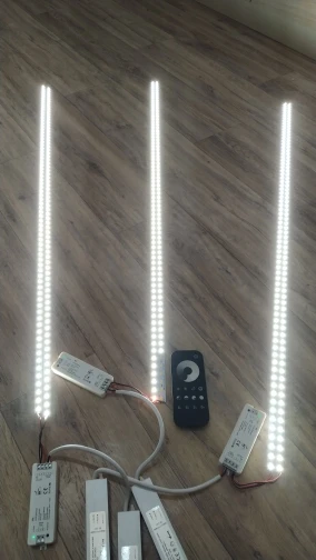 Заказывал эти диммеры до этого. В эксплуатации уже год. Все работает отлично и как надо ) вот заказал ещё ^^ много света не бывает ) есть пульт в маленькой коробочке - просто одна кнопка) это Мега штука на магните. Прилепил к холодильнику в любое место и готово. И пульт дополнительно взял для того чтобы менять яркость свечения, хоть и редко но надо ,) пользоваться всем удобно! Пока не проверил работоспособность ,)