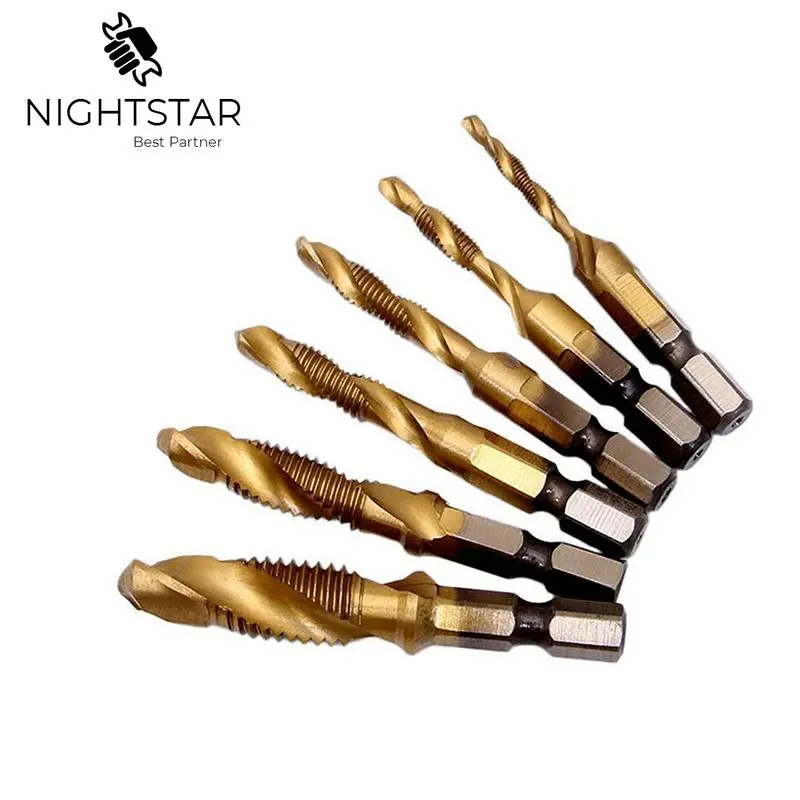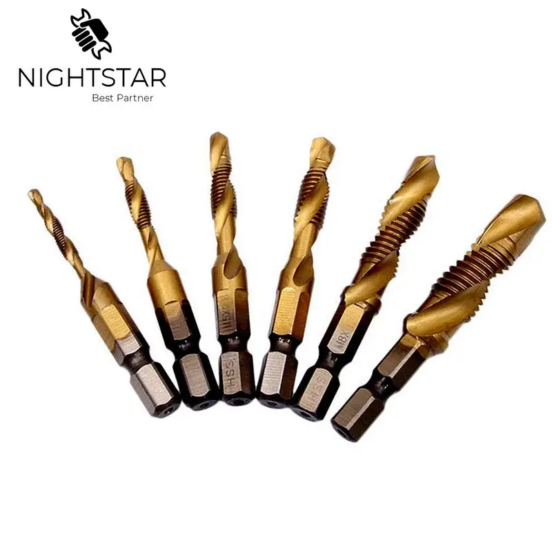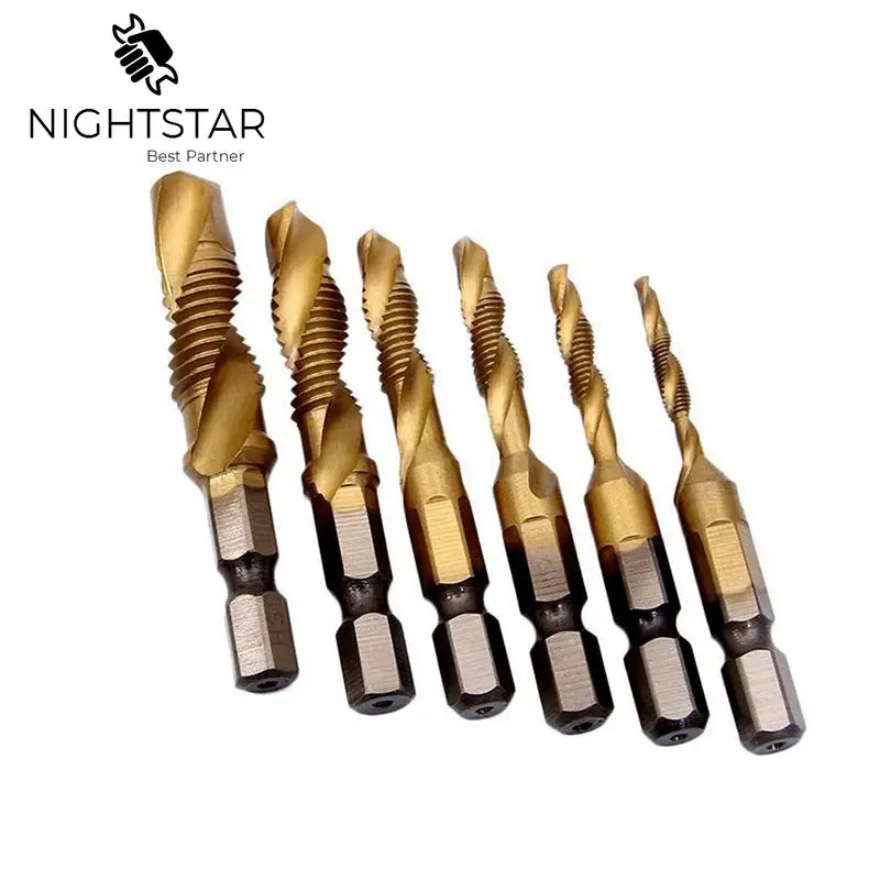 Krachtige 6 шт 14 "с шестигранным хвостовиком сверла и наконечники резьба M3-M10 титановые метчики с титановым покрытием биты для сверла для деревообработки ручные инструменты