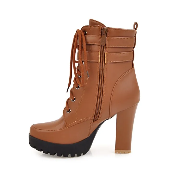 SLYXSHженские ботильоны на высоком каблуке осенне-зимние женские ботинки на платформе со шнуровкой модная обувь больших размеров белый, черный, коричневый цвета