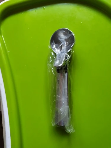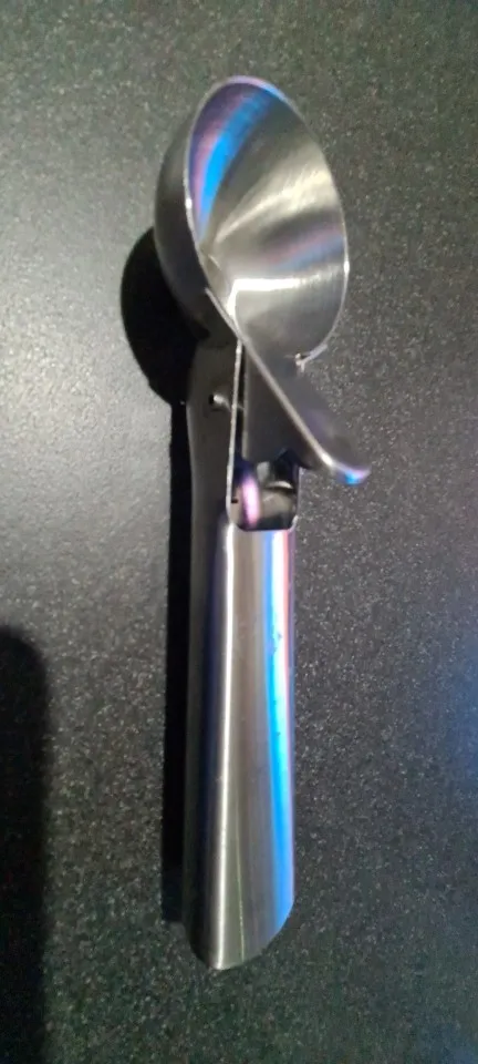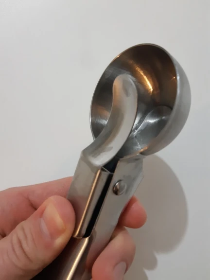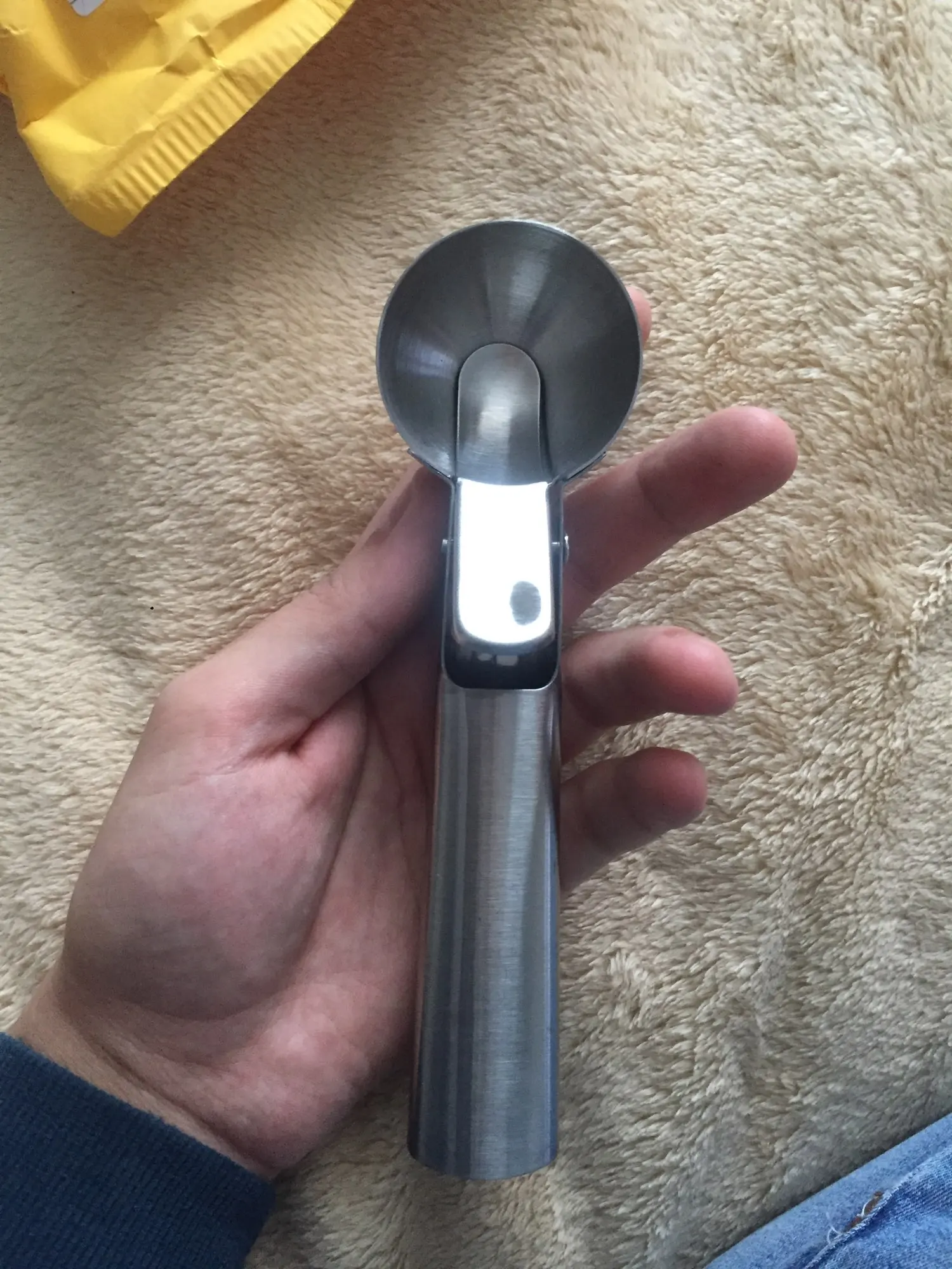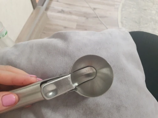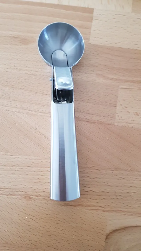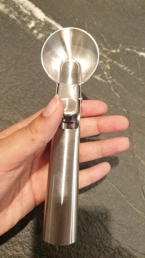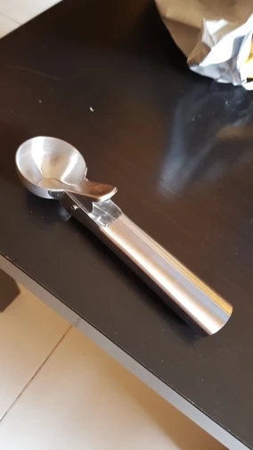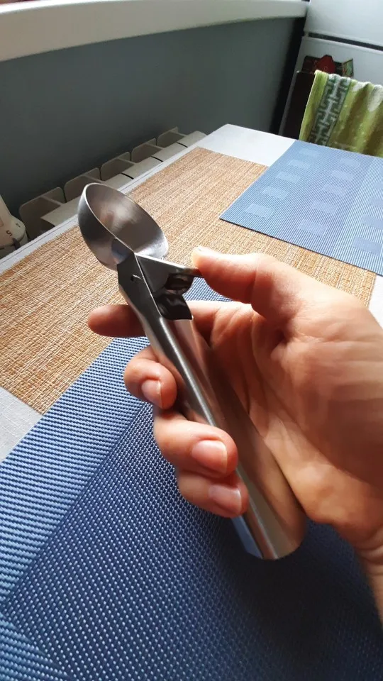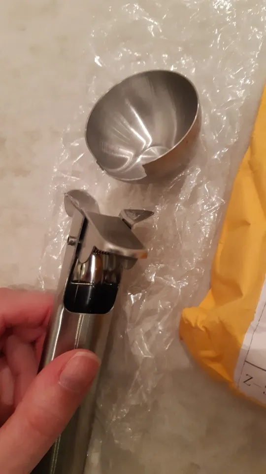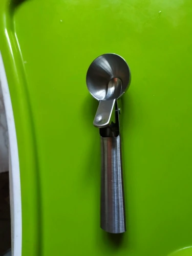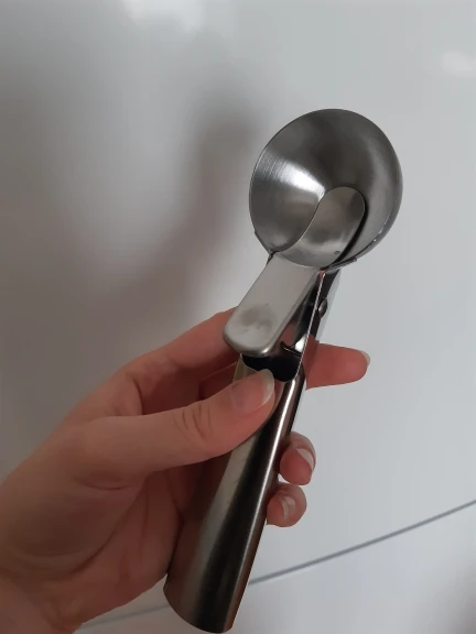 Визуально ложка понравилась, использовать пока не удалось. Большой плюс, что внутри рычаг, с помощью которого можно доставать шарик с мороженным. Надеюсь в использовании не подведёт.