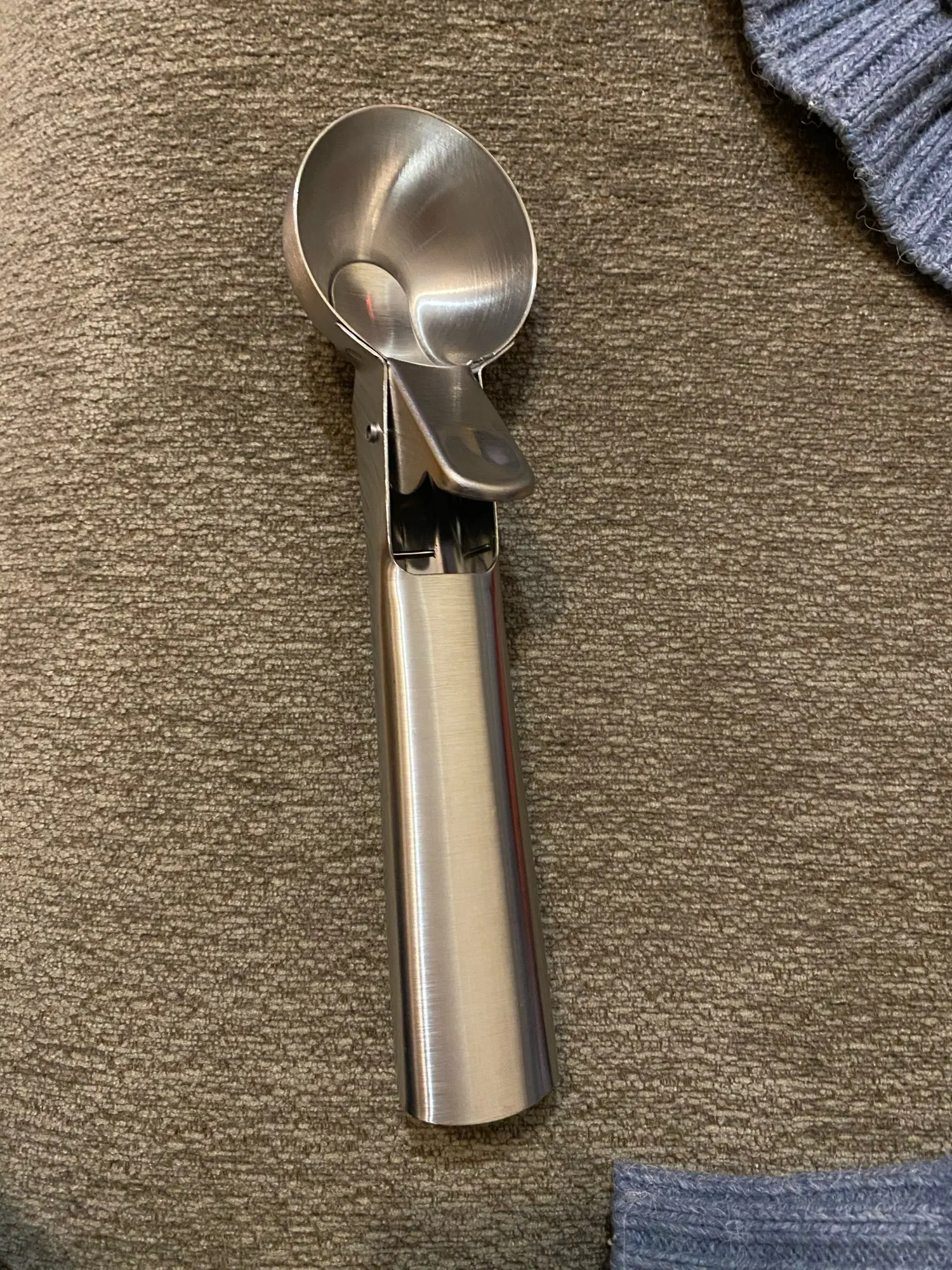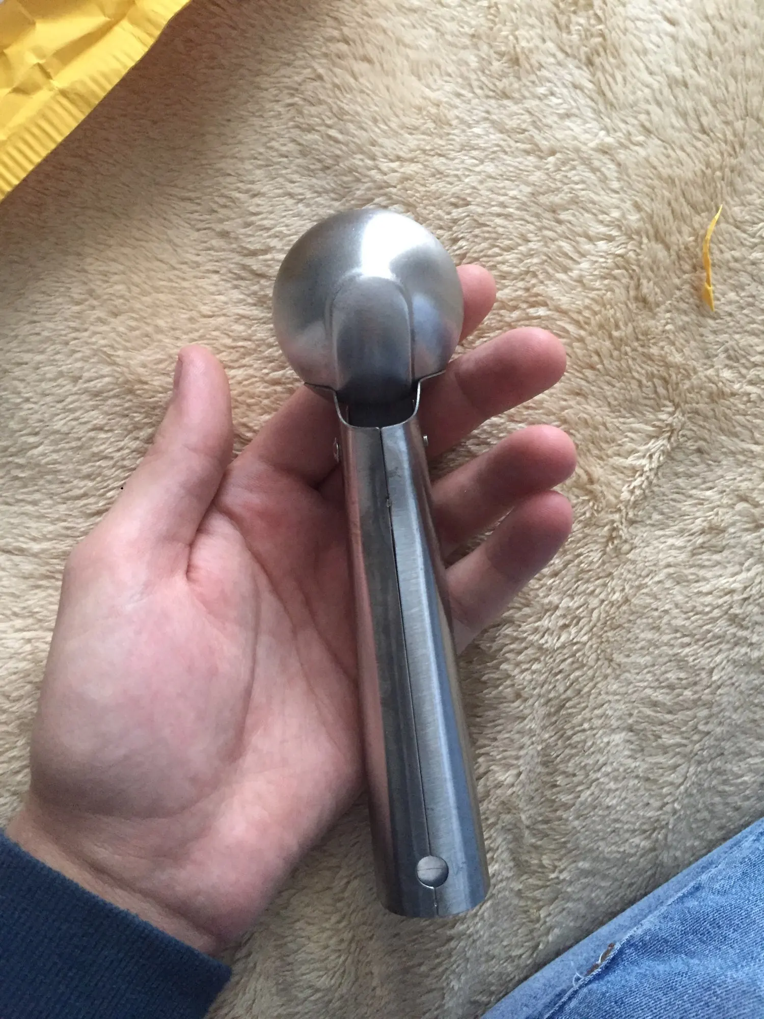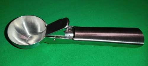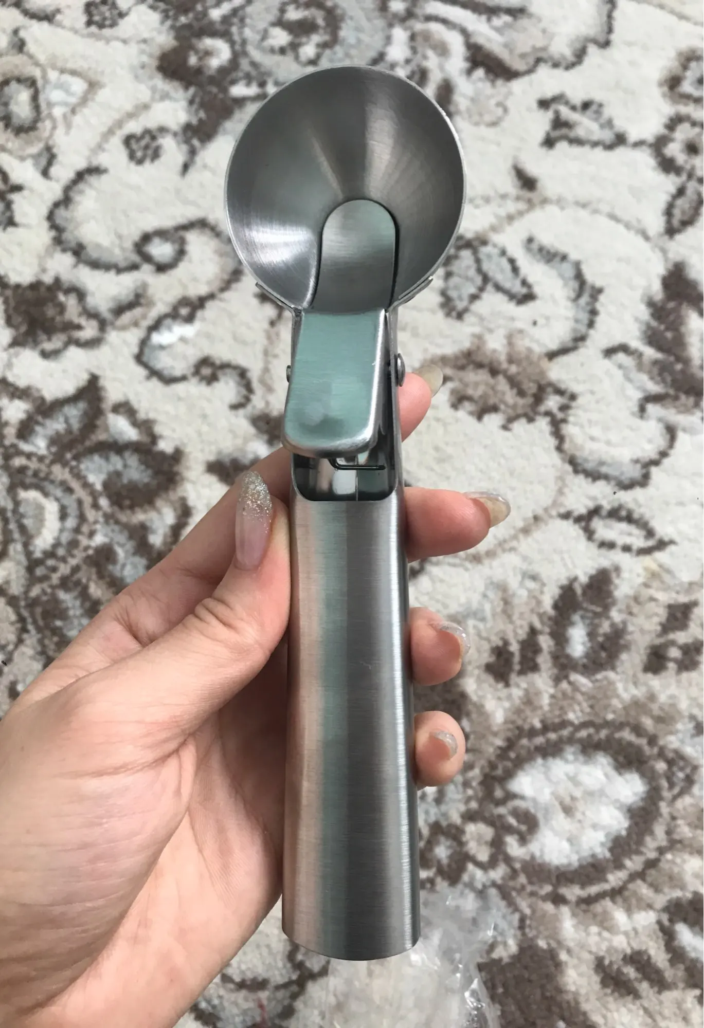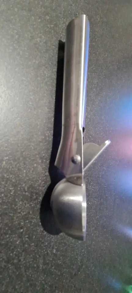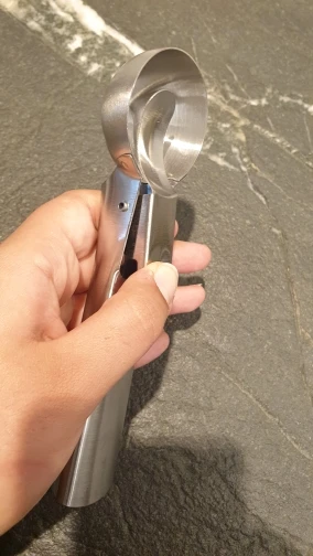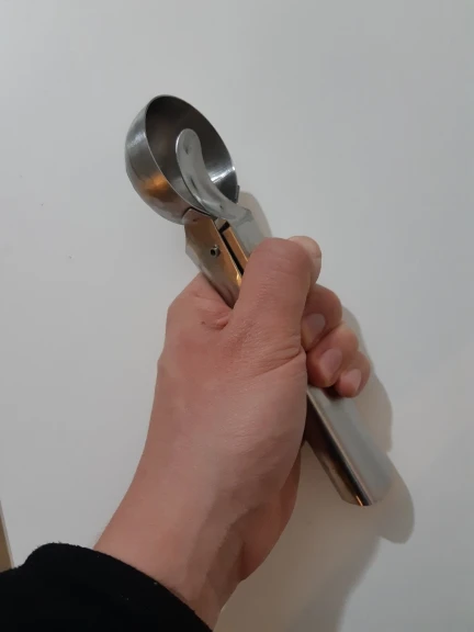 Визуально ложка понравилась, использовать пока не удалось. Большой плюс, что внутри рычаг, с помощью которого можно доставать шарик с мороженным. Надеюсь в использовании не подведёт.