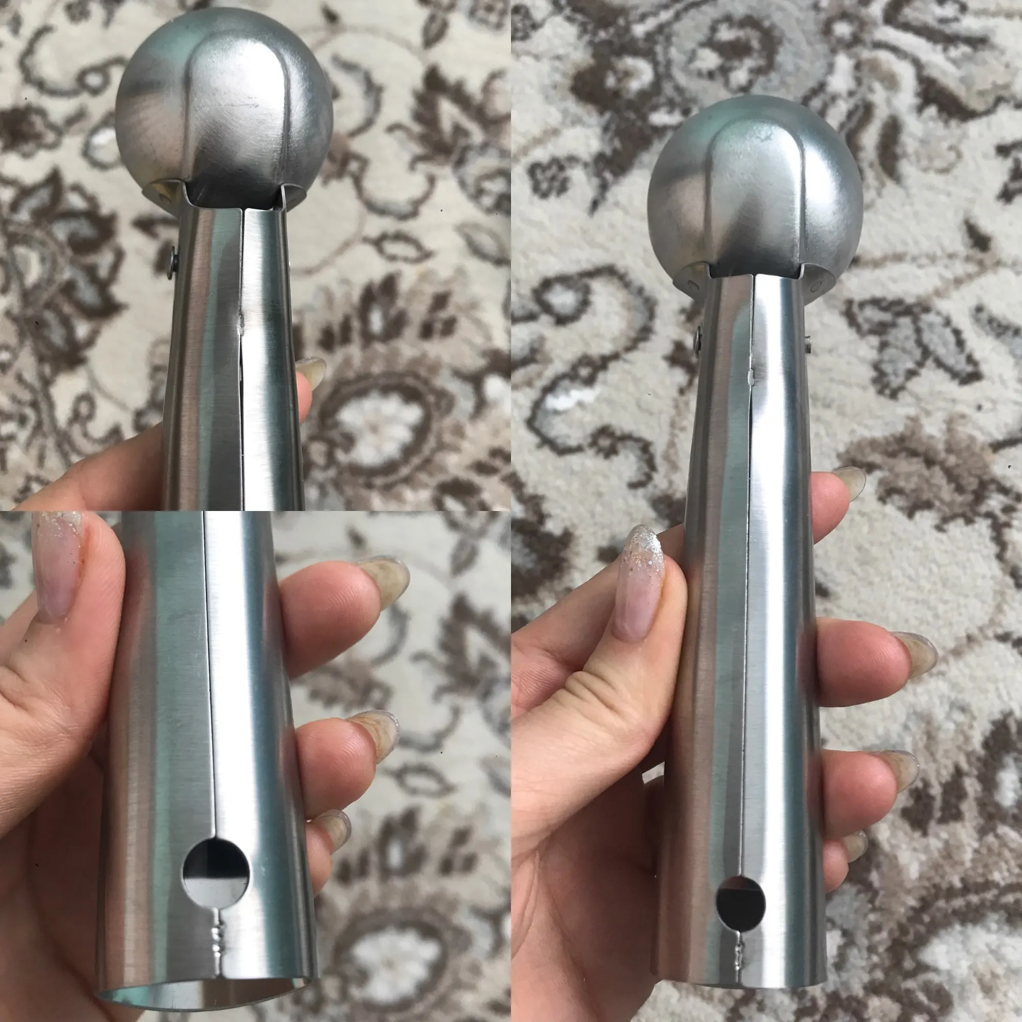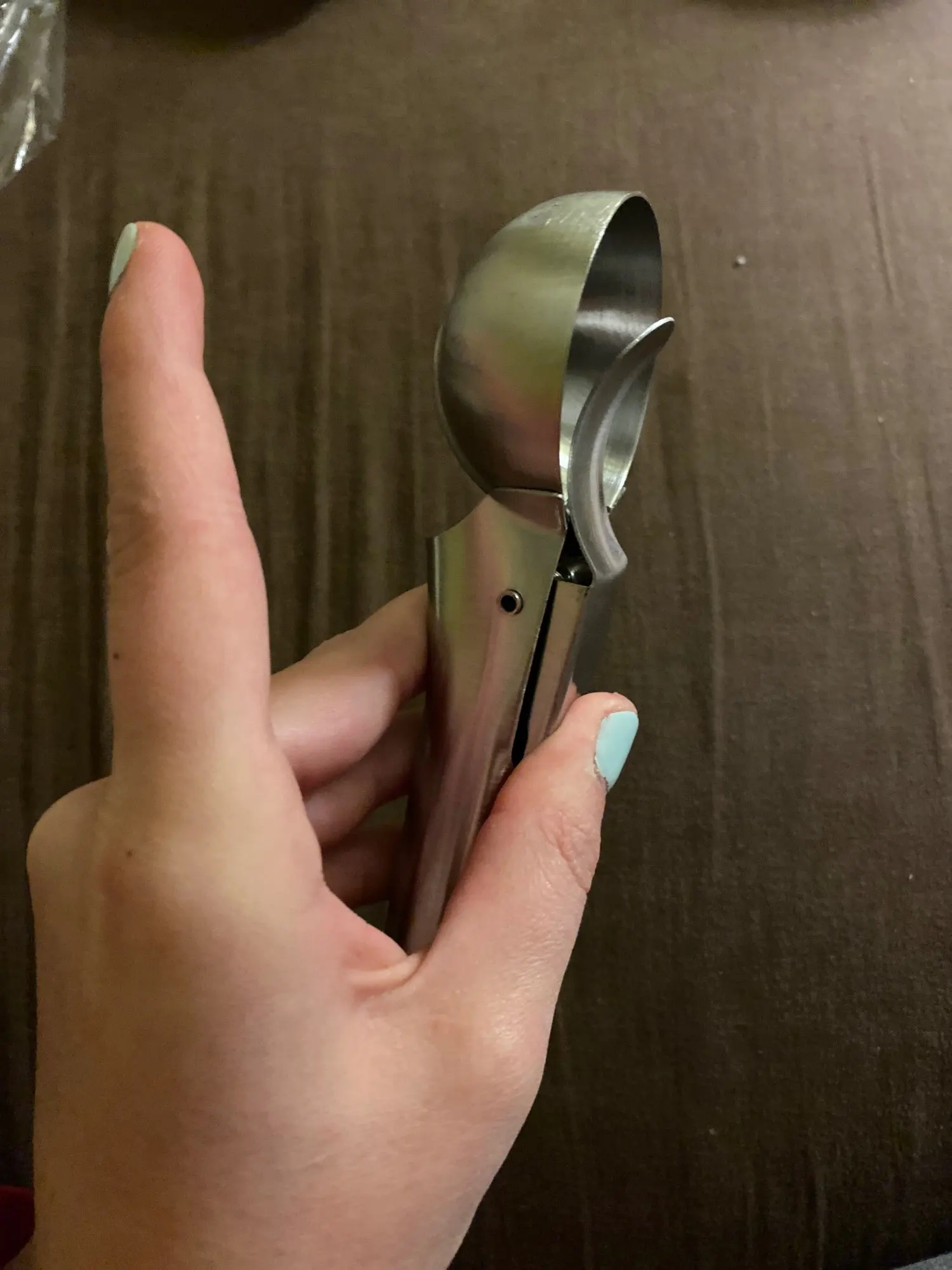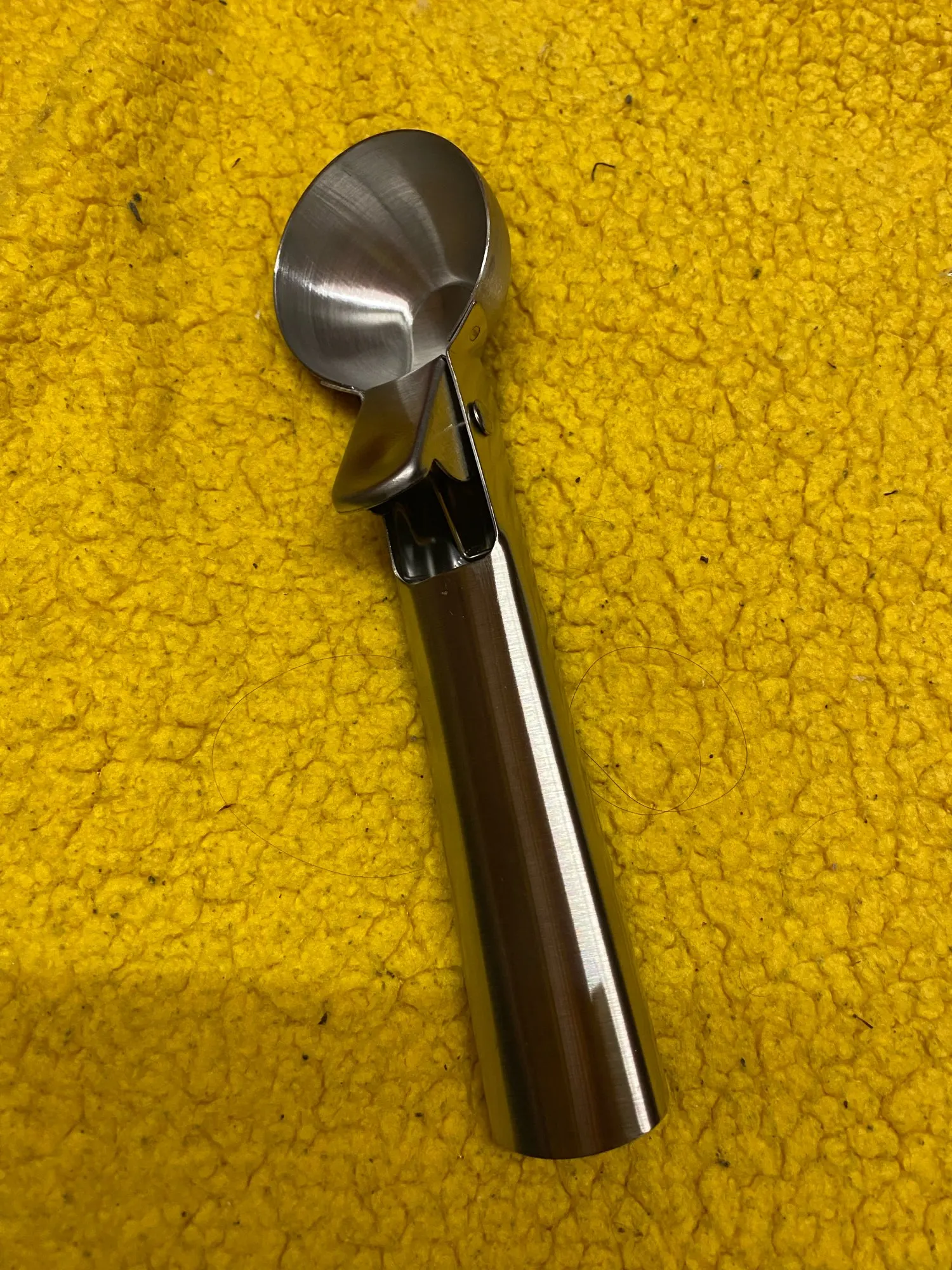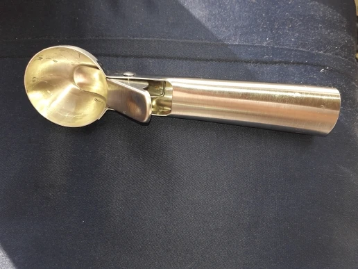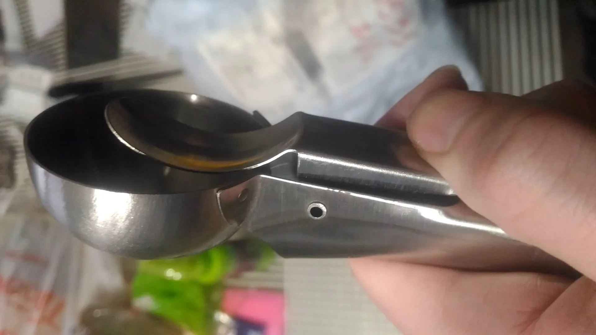 Визуально ложка понравилась, использовать пока не удалось. Большой плюс, что внутри рычаг, с помощью которого можно доставать шарик с мороженным. Надеюсь в использовании не подведёт.
