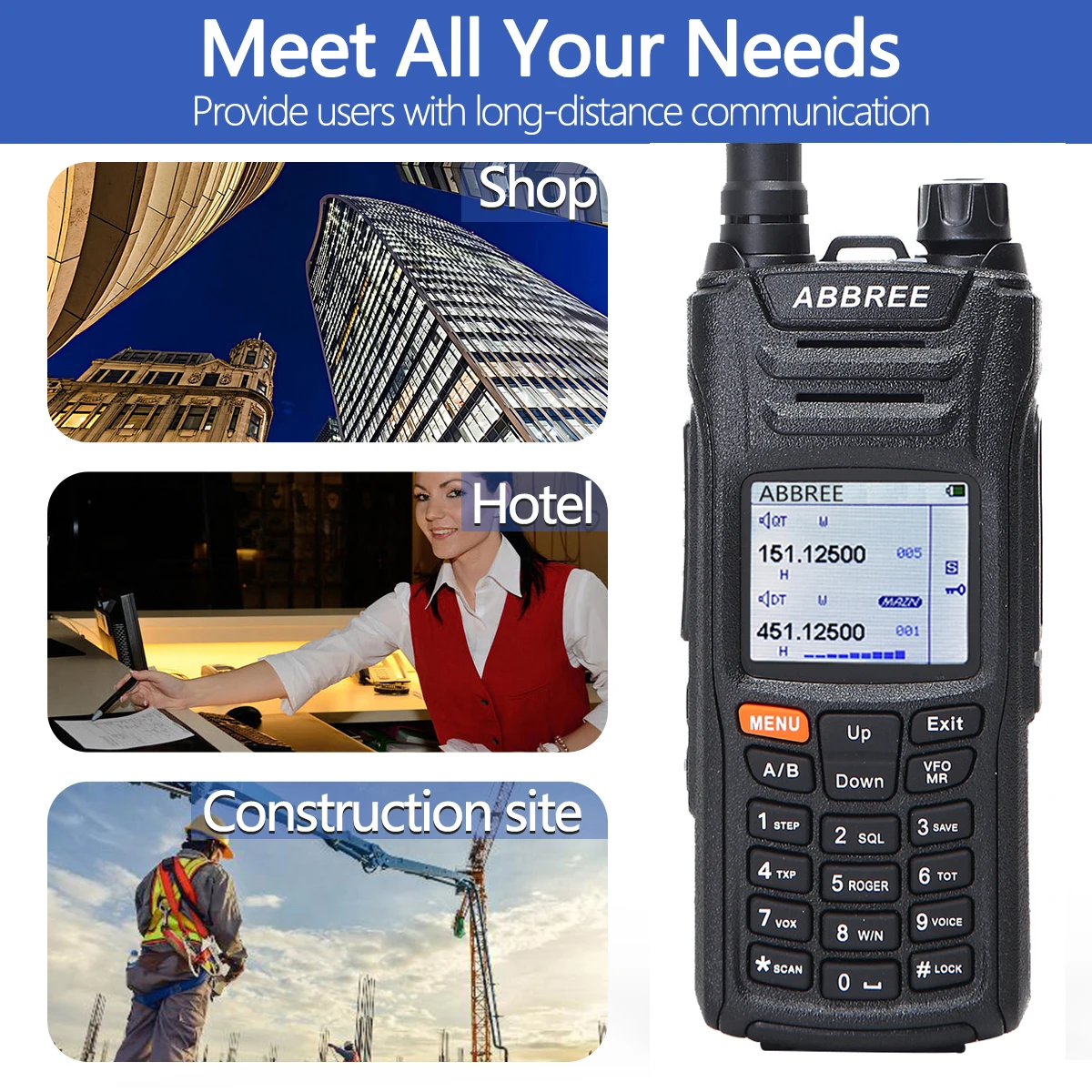 ABBREE AR-F6 Walkie Talkie, полнодиапазонная многофункциональная рация DTMF 999CH, VOX, DTMF, функция SOS сканирования, секундомер, функциональный цветной ЖК-дисплей