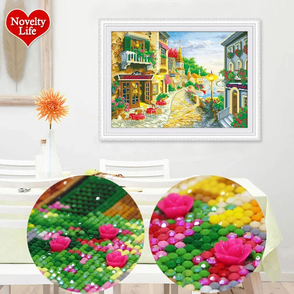 Алмазная картина 5D "сделай сам", вышивка крестиком, картина с изображением кофейни, картина из круглых камней особой формы