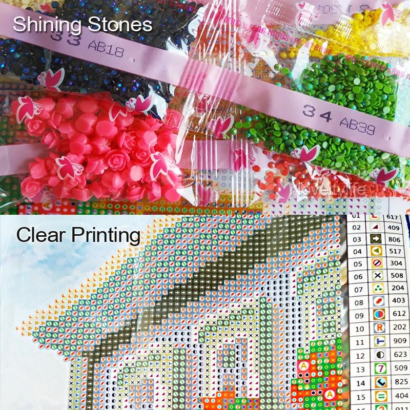 Картина очень красивая. Приехала быстро. В картине есть три вида страз, которые с перламутром (AB стразы). Один вид специальных страз - розочки. Картина приехала целая, не помятая. Еще и брелочек положил продавец. Продавцу спасибо, рекомендую.