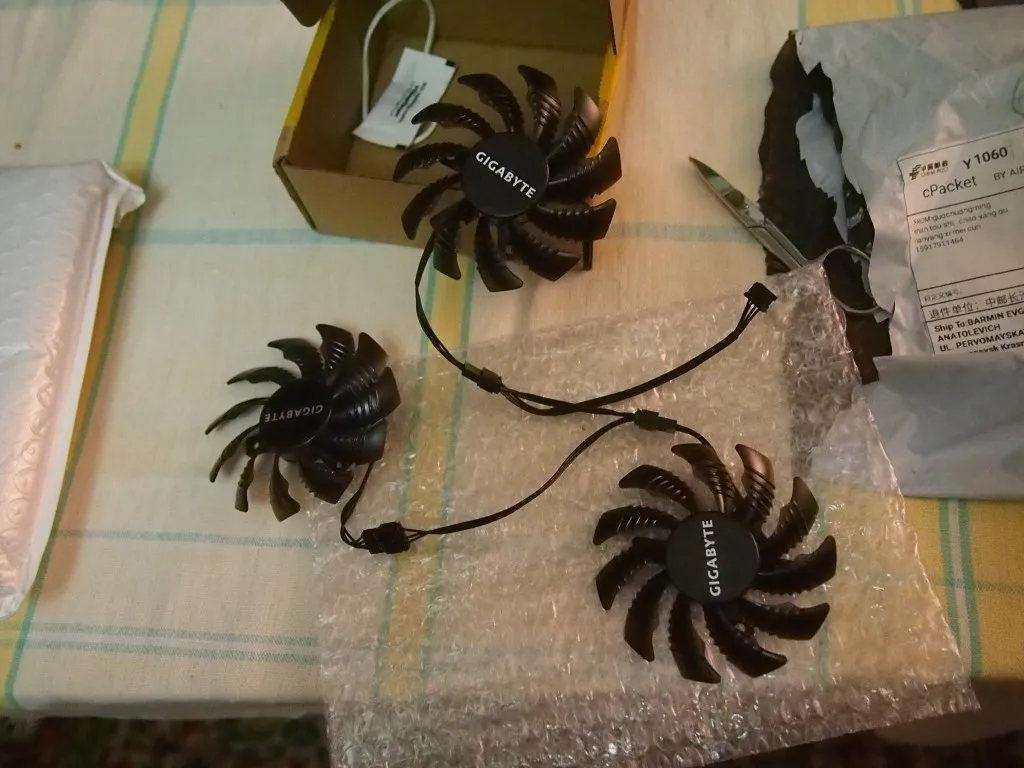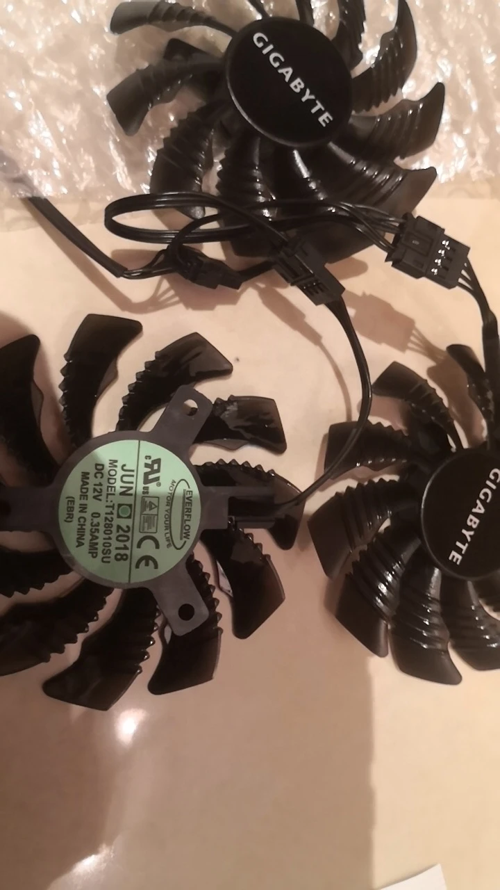 Вентиляторы отлично встали на gtx 1080 windforce oc, по шуму примерно как родные но вибрации почти нет, наклейка gigabyte более глянцевая и под ней мусор, провод питания вертушек очень туго подключается в 4pin разъем на видюхе, полупассивный режим прекрасно работает то есть вертушки останавливаются когда нет нагрузки