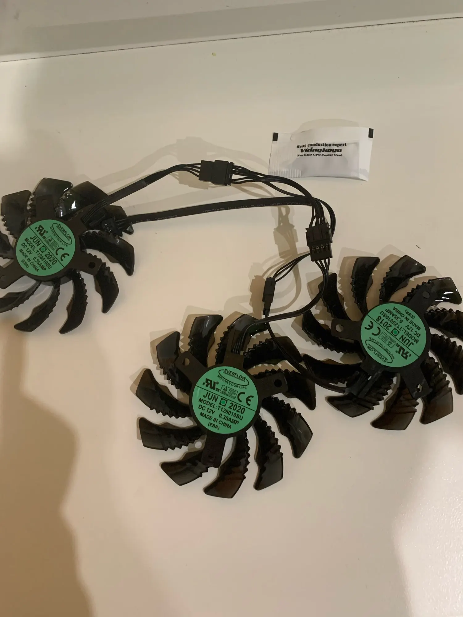 Эти вентиляторы прекрасно крепятся к моей карте. Кабели достаточно длинные, и они работают точно, как они должны. Я заменил вентиляторы с плохими подшипниками, и теперь карта Бесшумная по сравнению с ранее.