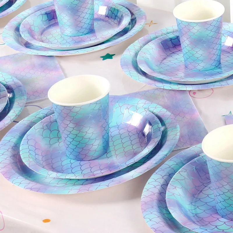 Бумажные тарелки HUIRAN в форме русалки, салфетки, одноразовая посу...