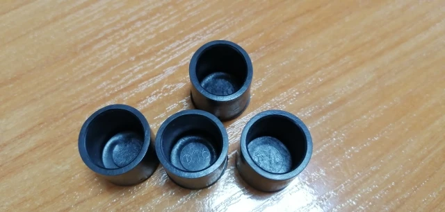 Подпятники из достаточно мягкой черной резины. Долго они не прослужат.Неудобно то, что по поверхности пола они не скользят и выдвинуть или задвинуть стул целая проблема, особенно, если стул тяжелый. Нужно на них наклеивать войлок. У меня стулья косолапые и упор идет на один край ножки, эти подпятники не спасли, начали искривляться на третий день. Тут нужно ноги стула пилить. Если у вашего стула ножки балетные, то будет все ок.