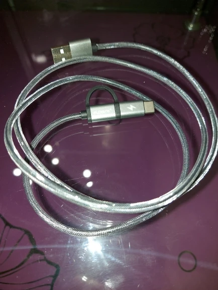 Шнур с двумя разными насадками, особенно удобен в компании, где у всех разные телефоны. Взяла несколько себе и на подарки, но увы до нового года не успели придти( А так отличные на вид