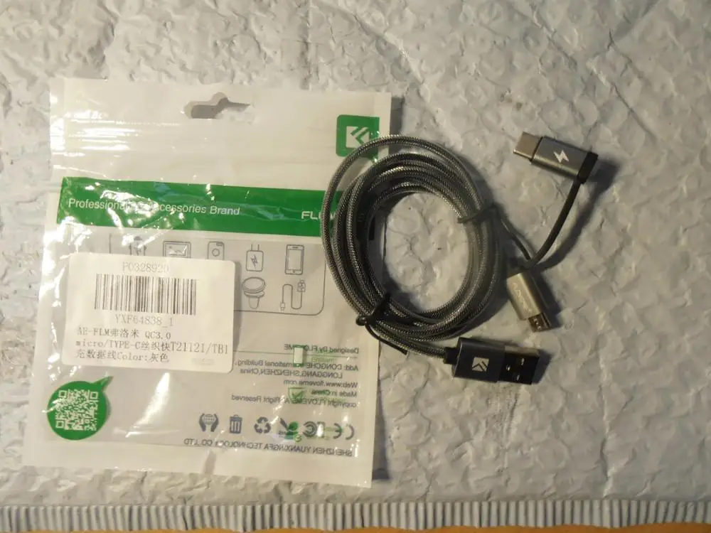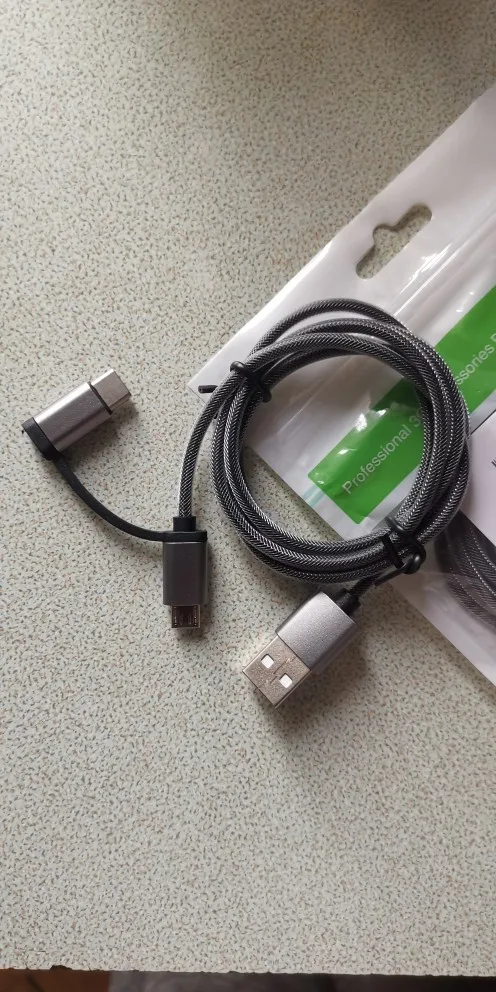 Видимо только мне так "повезло", что посылка шла в KZ два месяца. Оплётка хорошая, но жёсткая, имейте в виду. Как и в описании, ровно 1 метр. Type C плотно садится сверху, не болтается. Мелкие девайсы заряжаются через Micro USB как обычно, но для телефона этот кабель режим быстрой зарядки не поддерживает (Huawei Mate 20). В целом довольна, мне не особо нужна была быстрая зарядка. Хотелось кабель с двумя разъёмами, это и получила.