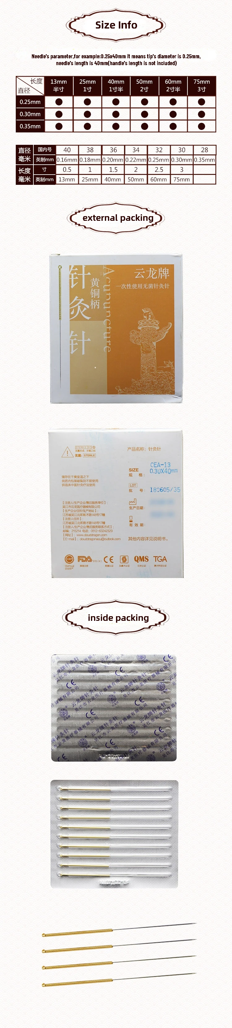 100 шт/коробка одноразовые стерильные иглы иглоукалывания латунная ручка Стерильная acupuntura asepsis Алюминиевая фольга Упаковка