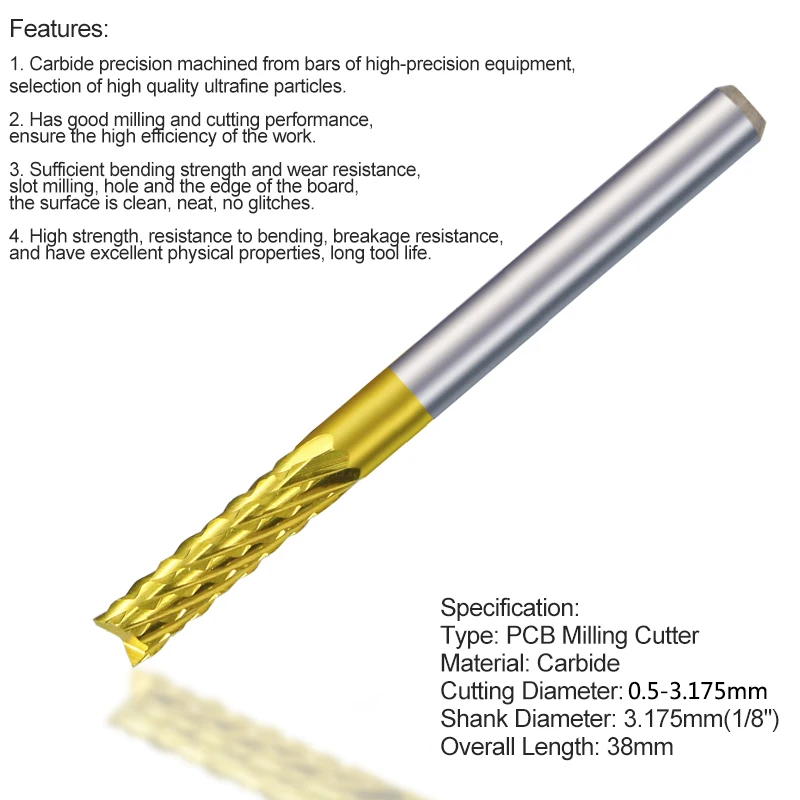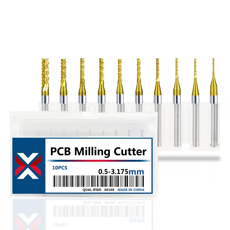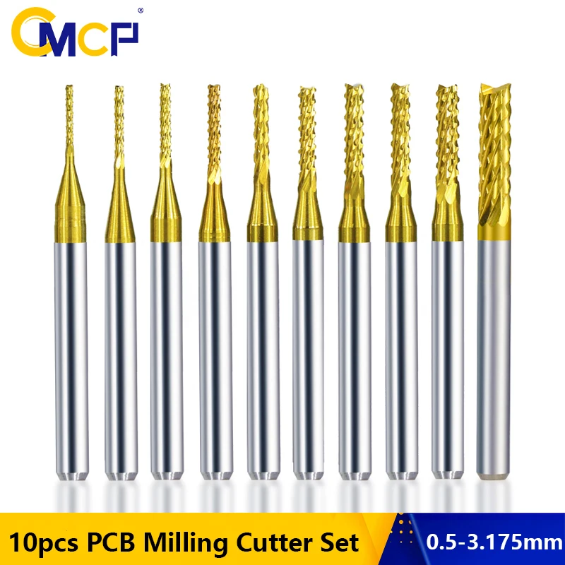 Концевая фреза CMCP для кукурузы, 10 шт., 0,5-3,175 мм, набор карбидных фрез для печатной платы, фрезерный станок с лужёным покрытием и хвостовиком 3,175 мм, инструменты для резки печатной платы