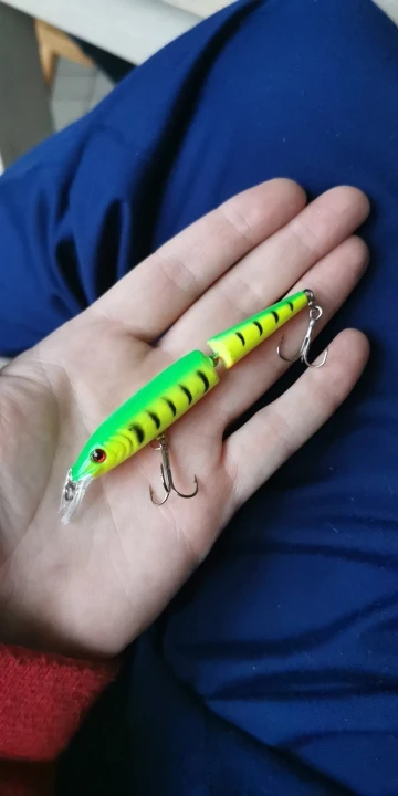 Заказ получил все хорошо, визуально осмотрев приобретенный двухсегментовый воблер могу сказать что описанию соответствует на все сто процентов качество товара отличное сделано качественно, соединение сегментов хорошее, трайники острие, покраска и пакрытие лаком хорошее качество товара мне нравится, как будет работать на воде отпишусь позже, но пакупкой доволен и всем остальным советую посетить данный магазин и совершить покупку данного товара качество горантирована сам лично убедился в этом.!!!!!