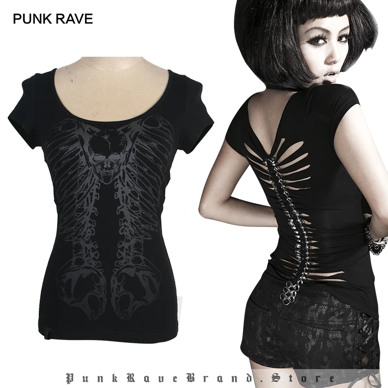 Летняя черная облегающая футболка с принтом черепа для девочек в стиле панк-рейв, популярные готические сексуальные хлопковые футболки в стиле визуал Кэй