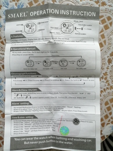 все приехало быстро, без проблем! часы тяжеленькие, корпус металл. настройка простая, механика не работает, пока не вынуть пломбу с головки. будут врать или нет, хз! на мою дрыщ руку великовата, застегнул в последнее отверстие ремешка) в инструкции сказано, что можно купаться и мыть машину, но категорически запрещено нажимать кнопки в воде, имейте ввиду!
