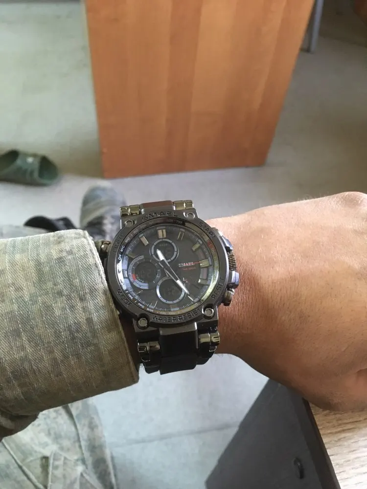Часы очень хорошие! Это очень большой, который выше или прочнее, он крутой. Очень красиво, все подошло. Прибыл очень раньше, менее месяца.