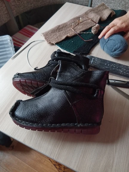 OUKAHUIзимние винтажные теплые женские ботильоны из натуральной кож...