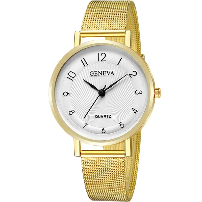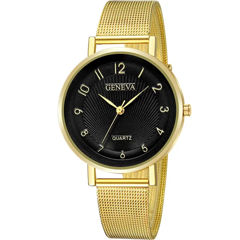 2019 Женевские часы для женщин часы на ремешке с зацепами, Нержавеющаясталь Аналоговые кварцевые наручные часы Роскошный Серебристый черные часы Montre Femme