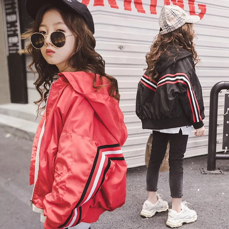 Куртки с капюшоном для девочек 10-12 лет, детские бейсбольные куртки на осень и весну, модная одежда для девочек-подростков