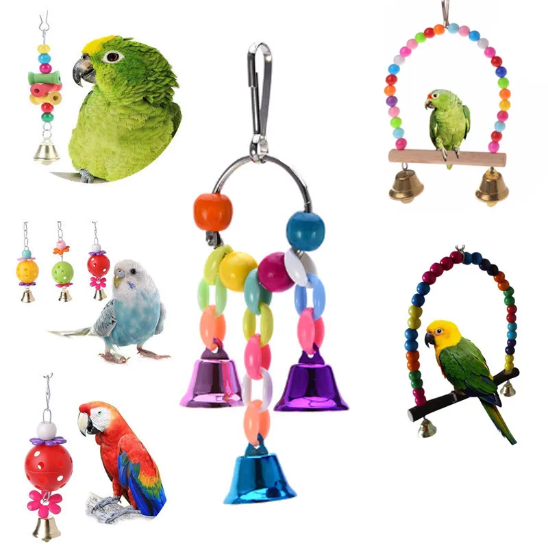 Разноцветные Бусины, колокольчики, игрушки для попугаев, аксессуары для птиц, игрушки для домашних животных, подставка для качелей, волнистый попугай, клетка для домашних птиц, жевательные качели, игрушки