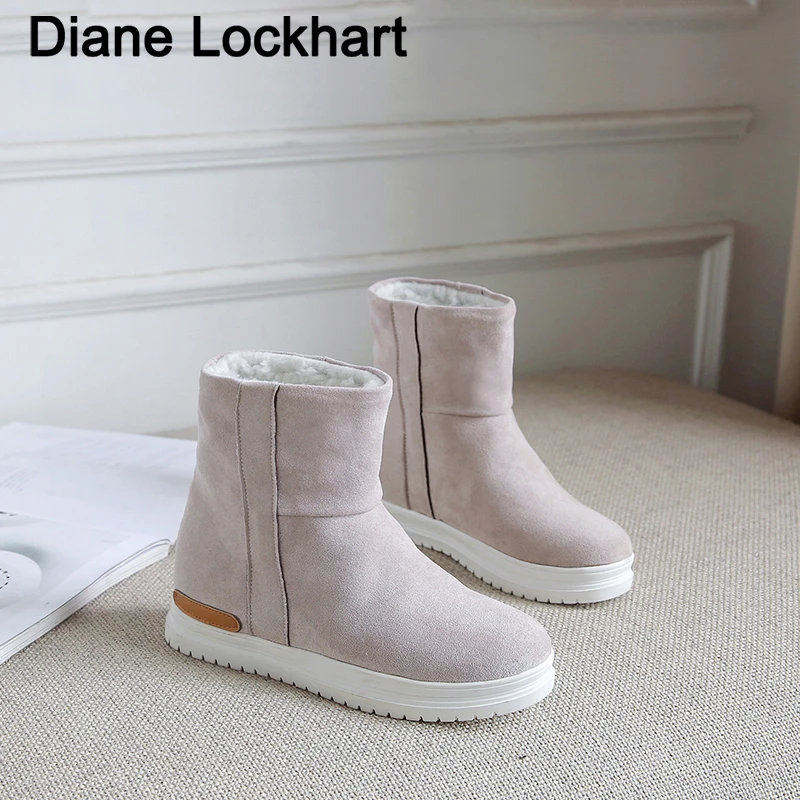 Ботинки женские зимние, на плоской подошве, из плюша, замши, без застежек, 33-43