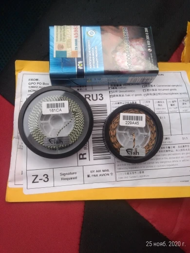 прийшло в Україну Львів за 30 днів забирав на Укрпошті все відповідає опису, не перевіряв чи є повних 20 метрів, шнур якісний на проводки для карпа..