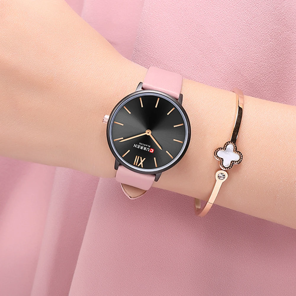 Женские часы CURREN, розовые аналоговые кварцевые часы, женские повседневные наручные часы с ремешком из мягкой кожи, часы relogios feminino