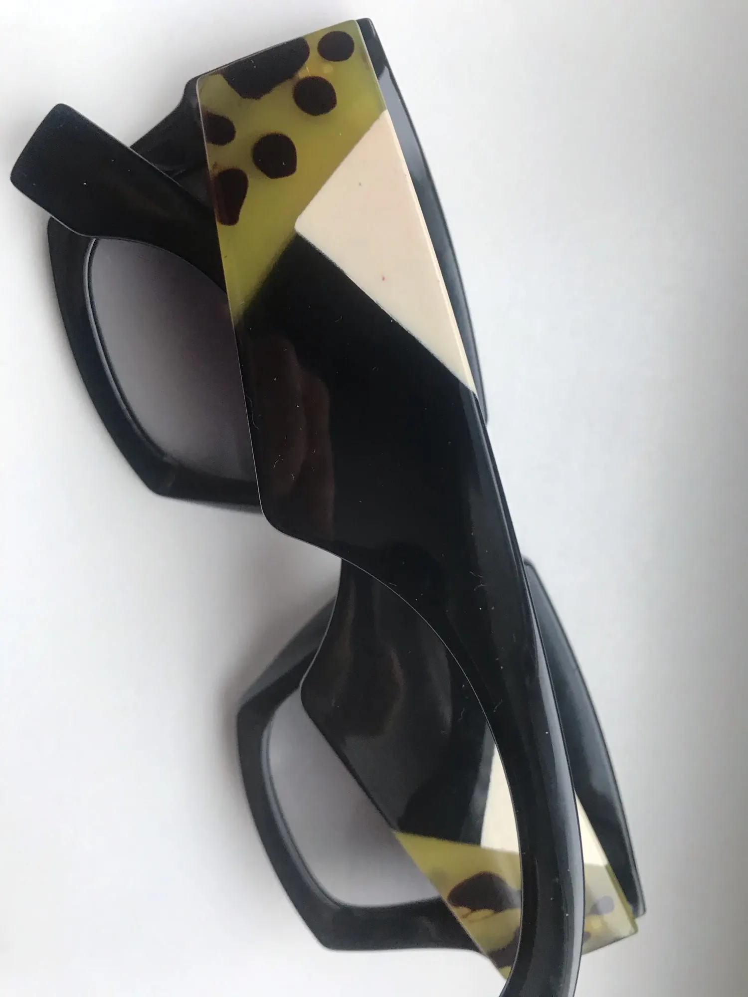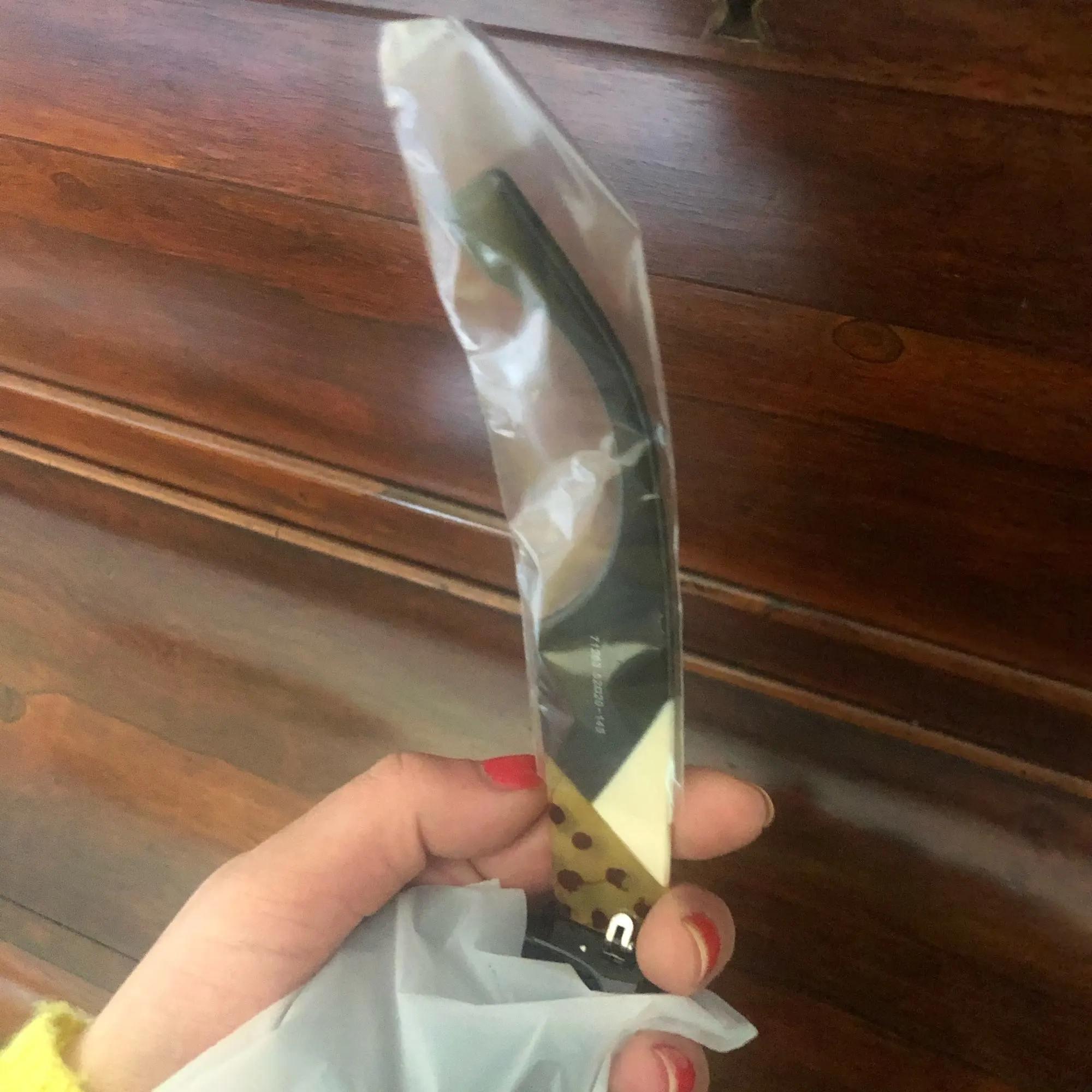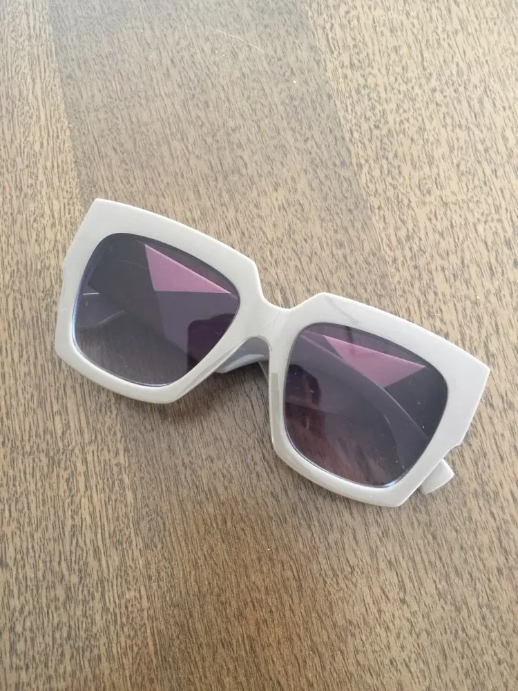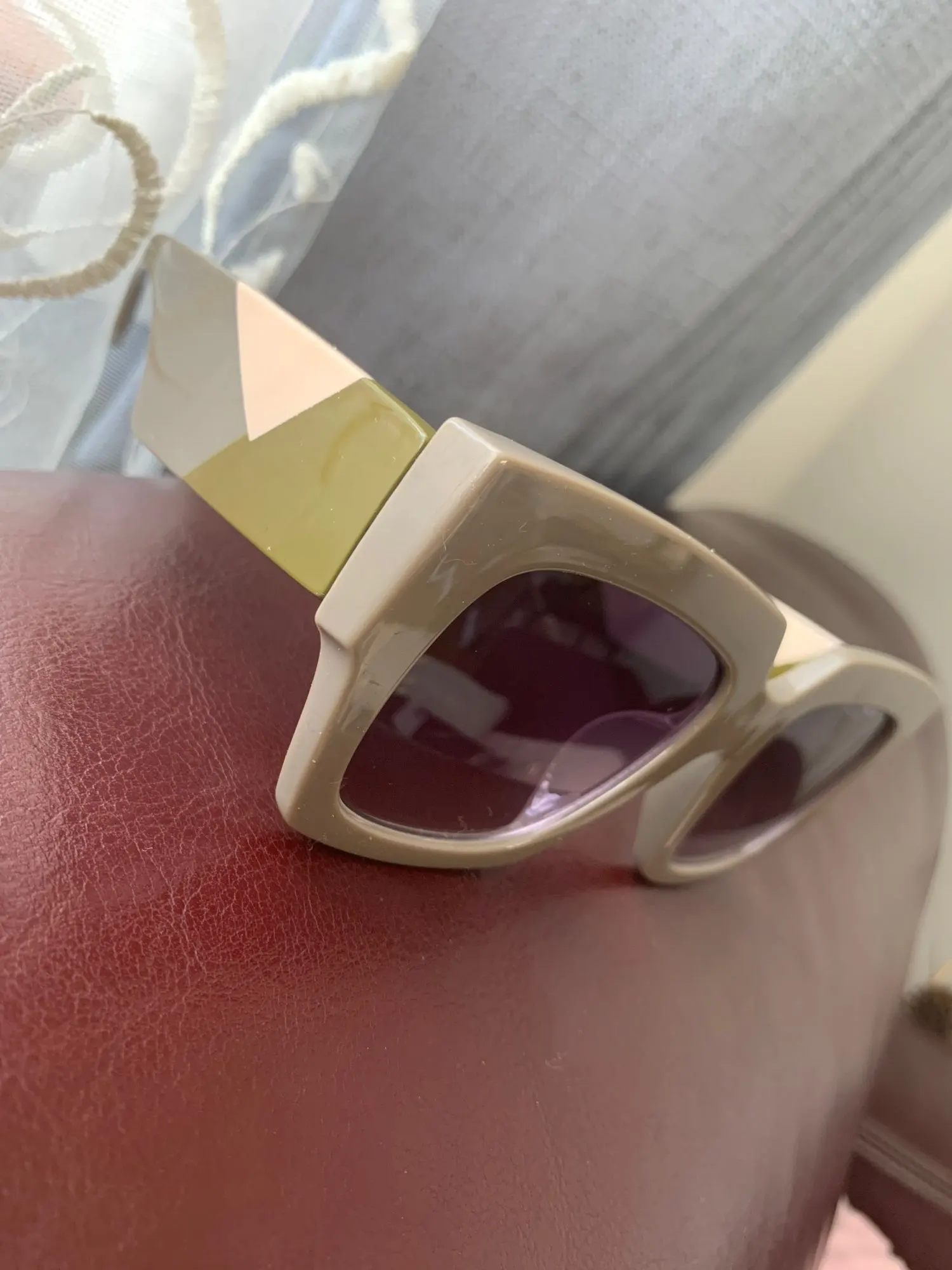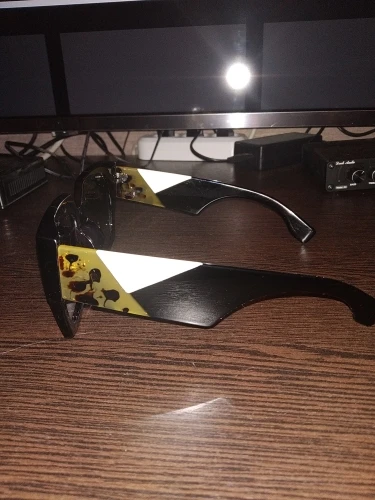Цвет вставок на дужке очков в описании товара леопардовый и ярко белый по факту ,если с " леопардом" можно смириться, то следующий цвет бежевый, что портит весь вид. К качеству притензий нет. Посмотрела отзывы с фото, у всех вставка кипельно белая, мне то почему застираный беж?!