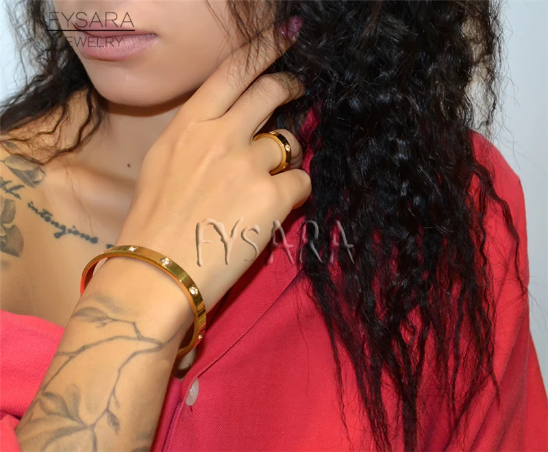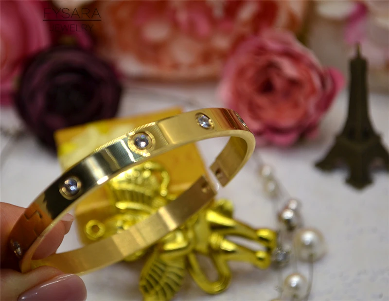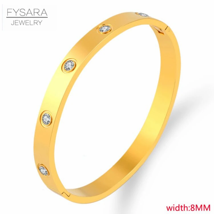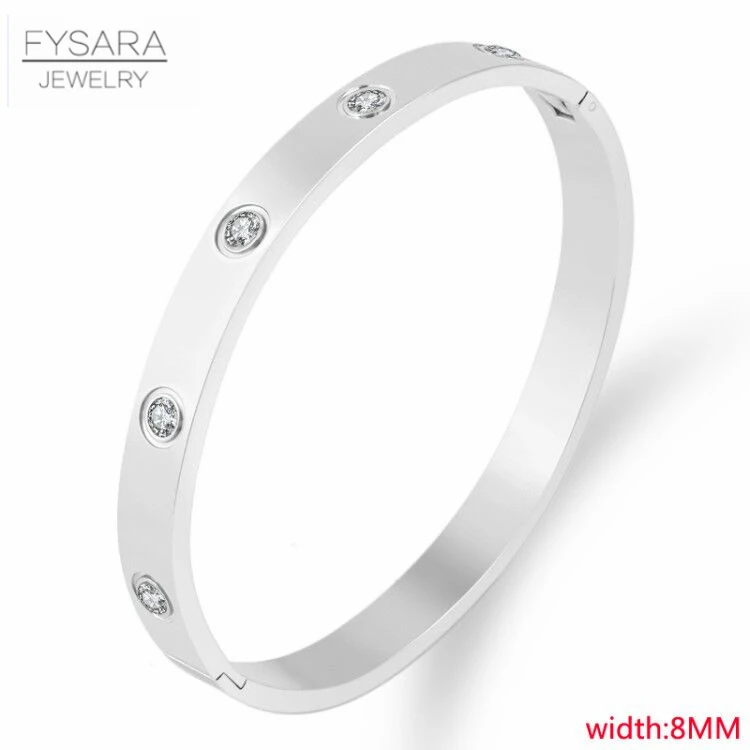 FYSARA Роскошные брендовые кристаллы любовь браслеты с кубическим цирконием браслеты Роскошные ювелирные изделия из нержавеющей стали браслеты для женщин подарок