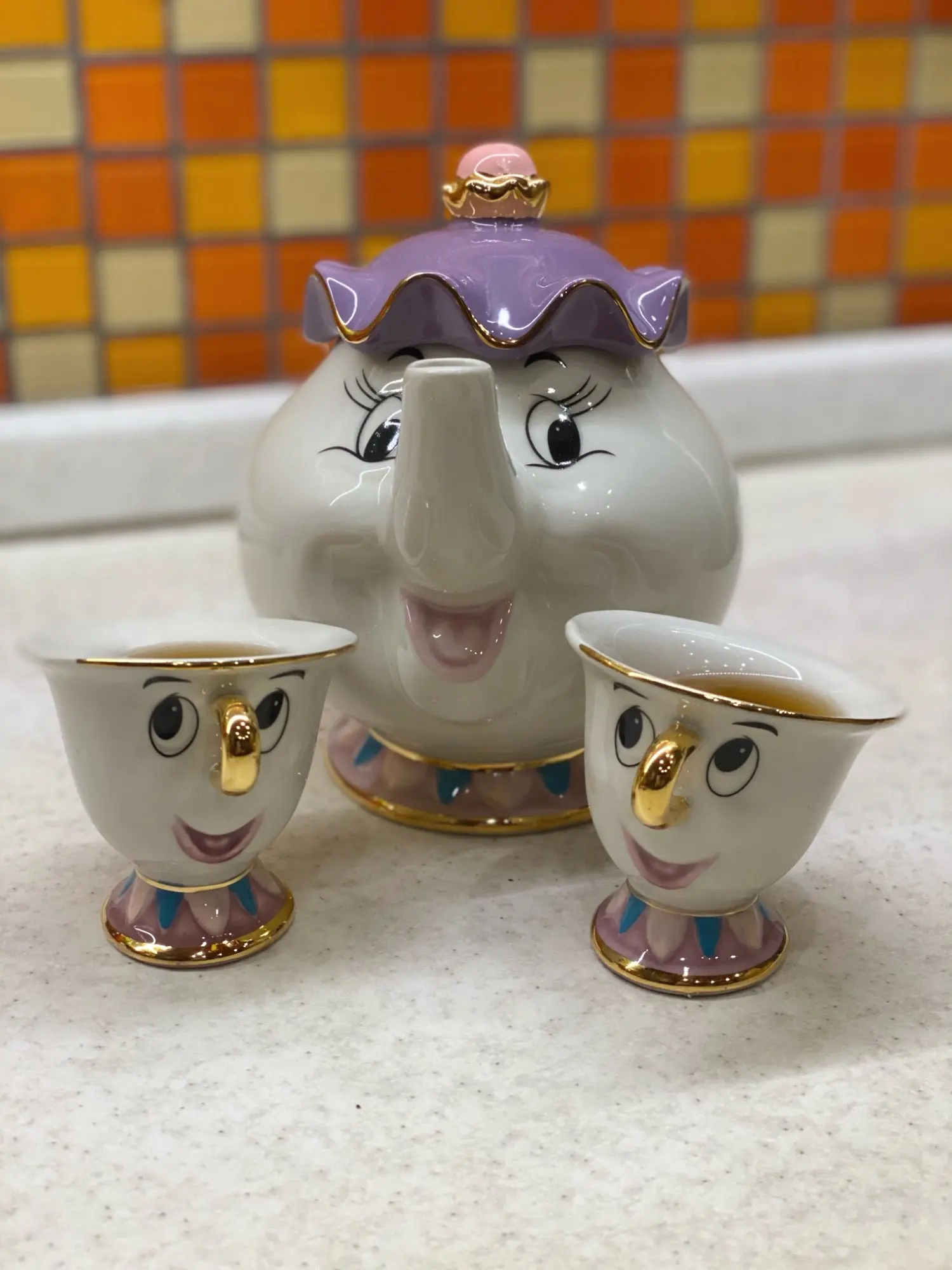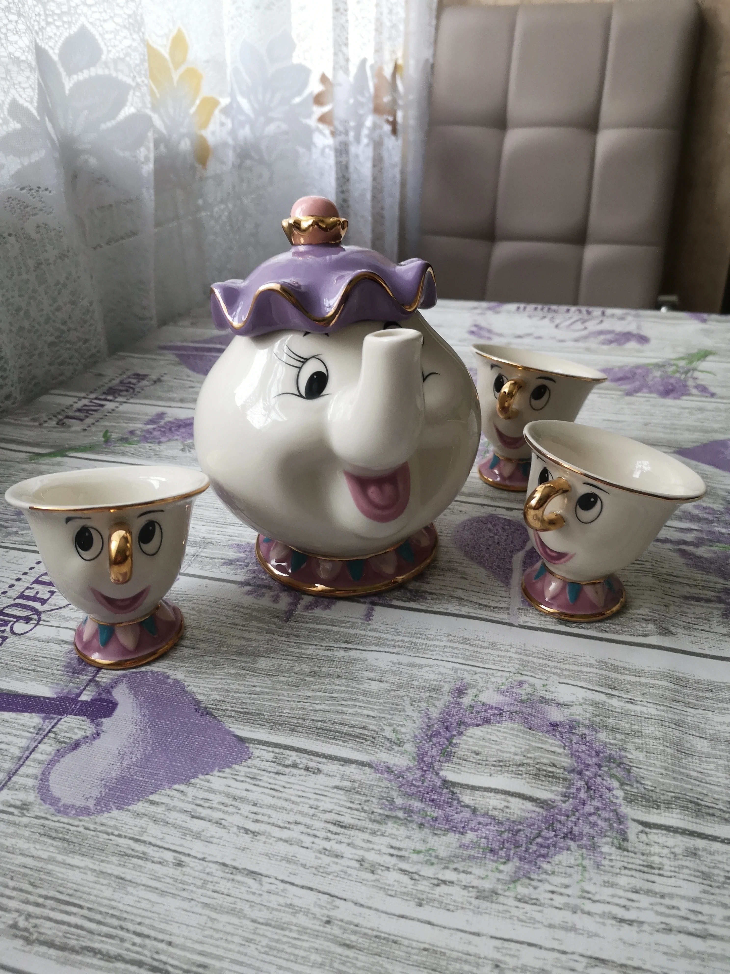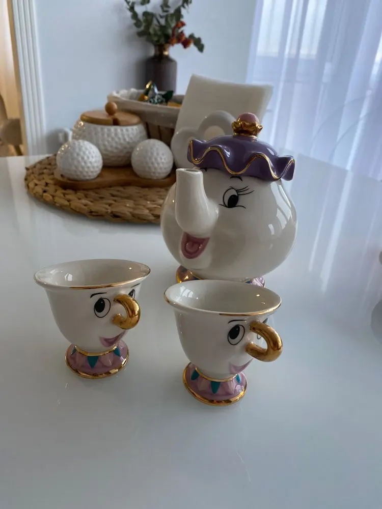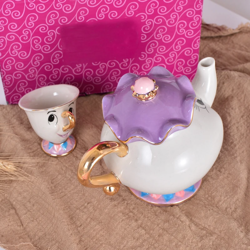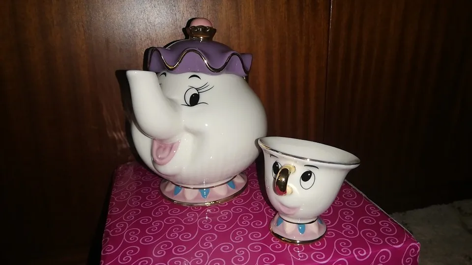 Симпатичный мультяшный Набор для кофе и чая Красавица и Чудовище, чашка с чипом Mrs Potts (не включает поднос)