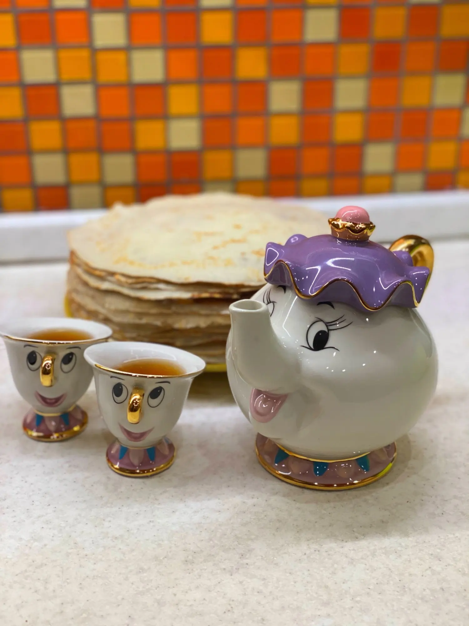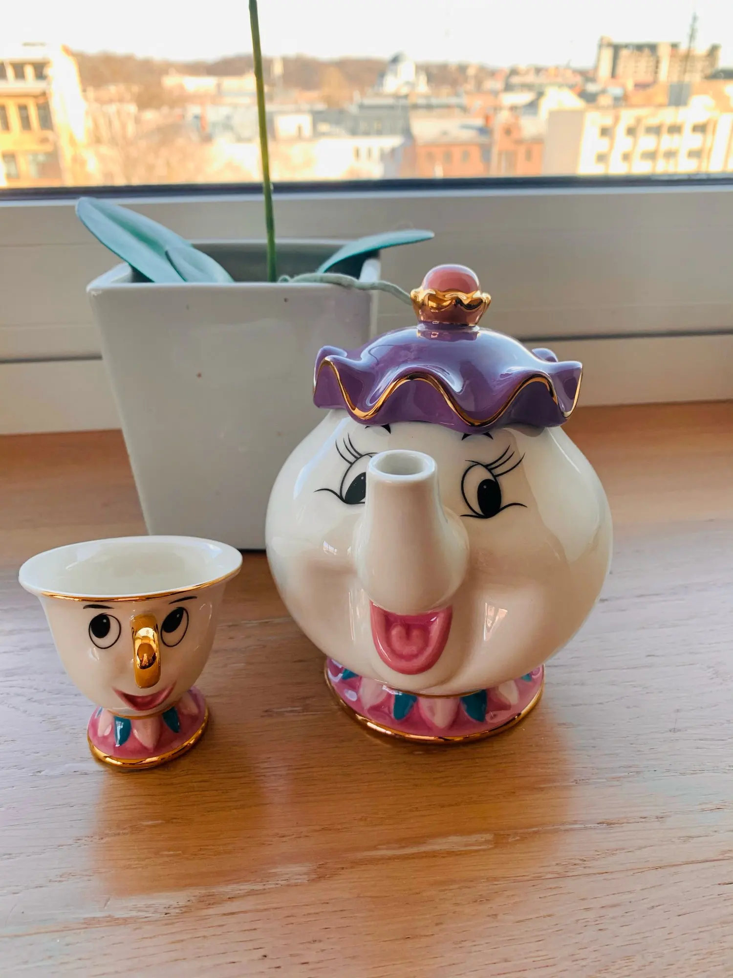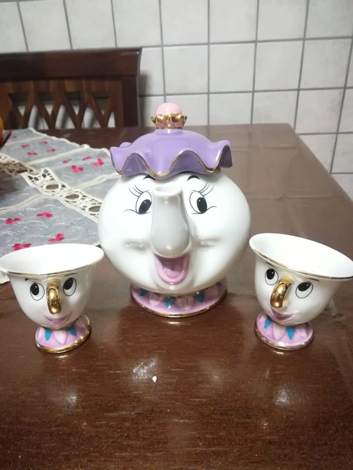 Симпатичный мультяшный Набор для кофе и чая Красавица и Чудовище, чашка с чипом Mrs Potts (не включает поднос)