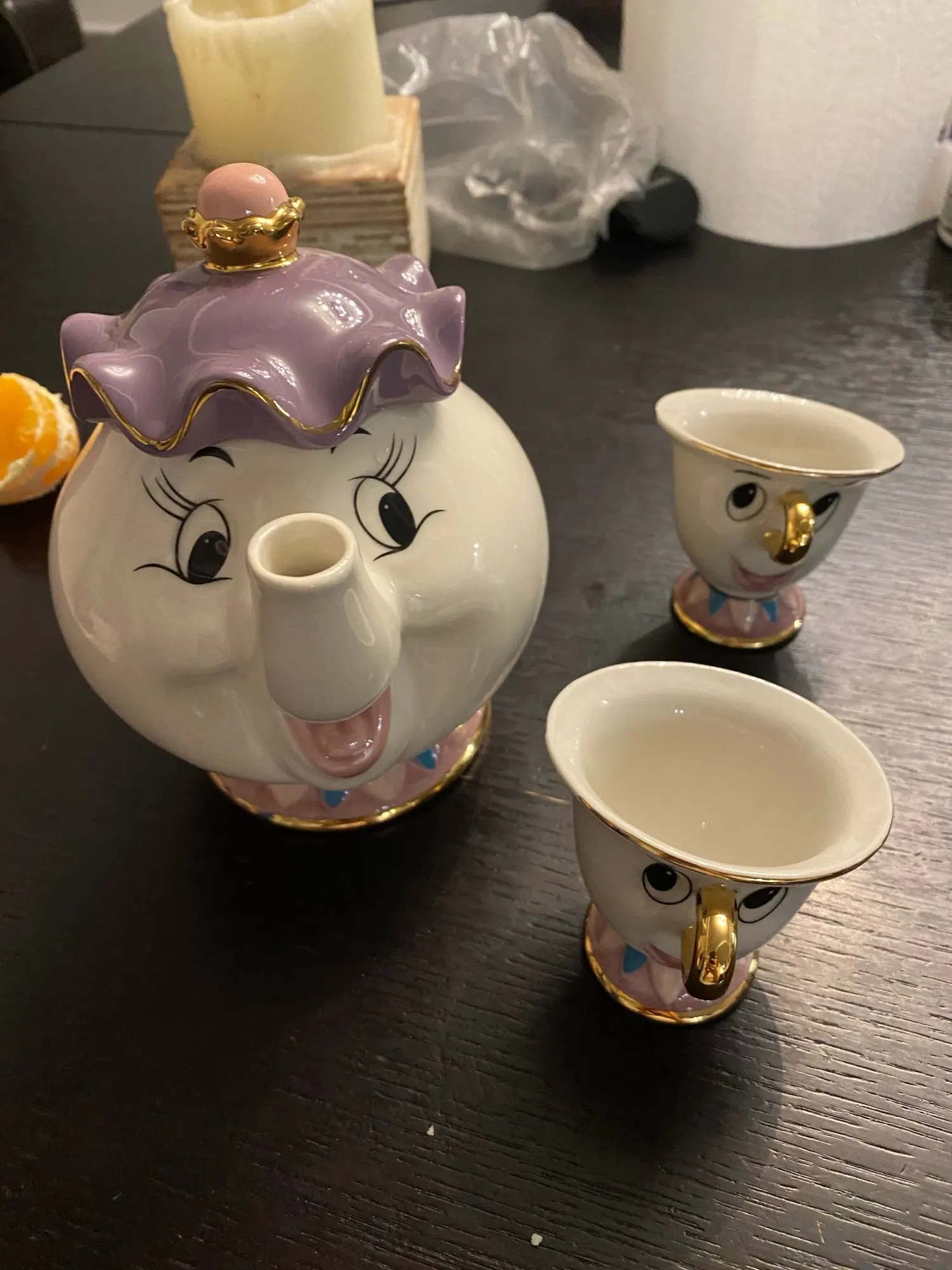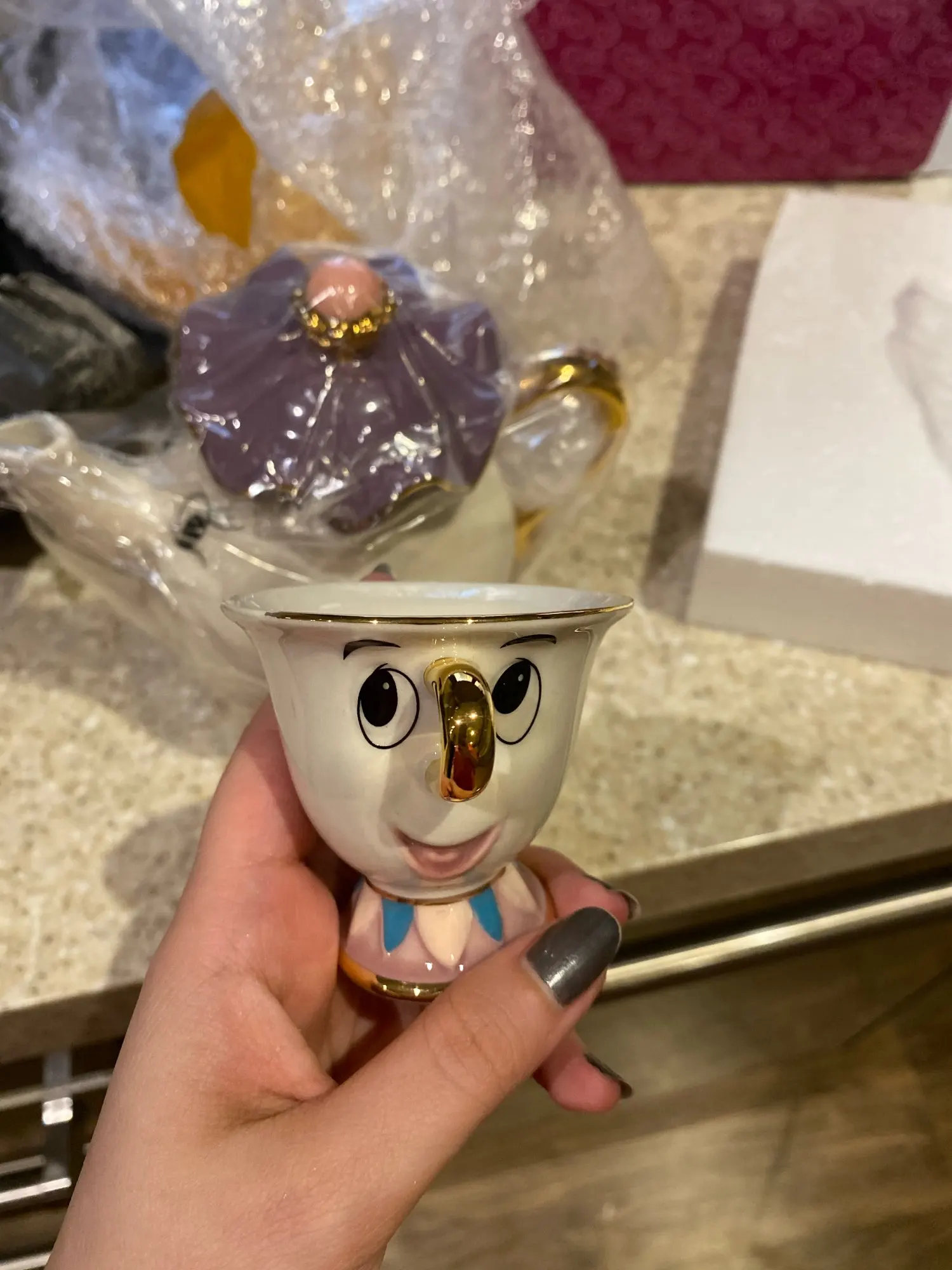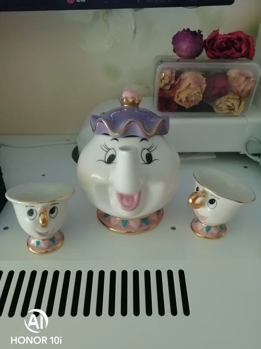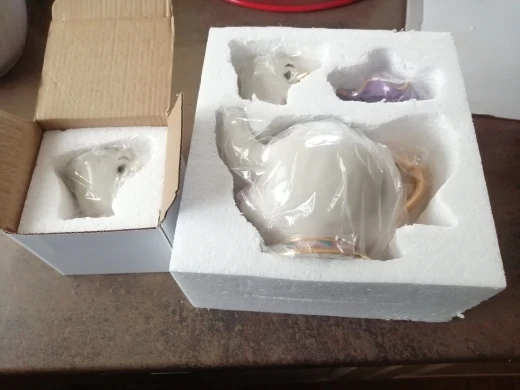 Ну, пришло быстро. Упаковано хорошо, надёжно. По качеству вопросы есть, но не к продавцу а к производителю, тк именно эти наборы продаются везде и считаются самыми дорогими. Фарфор толстый. Мне пофиг, но он толстый. Качество прокраски не фонтан, могло бы быть и лучше. У Чипа сбоку не до конца сделана золотая каемка - что бы не мучаться как я с мыслями что это брак, для всех кто как и я не особо помнит мультик, у чашки в мультике скол на том месте, и все производители теперь так обозначают этот скол. В целом, норм, подарю. Рада что купила тут в 2 раза дешевле чем везде.