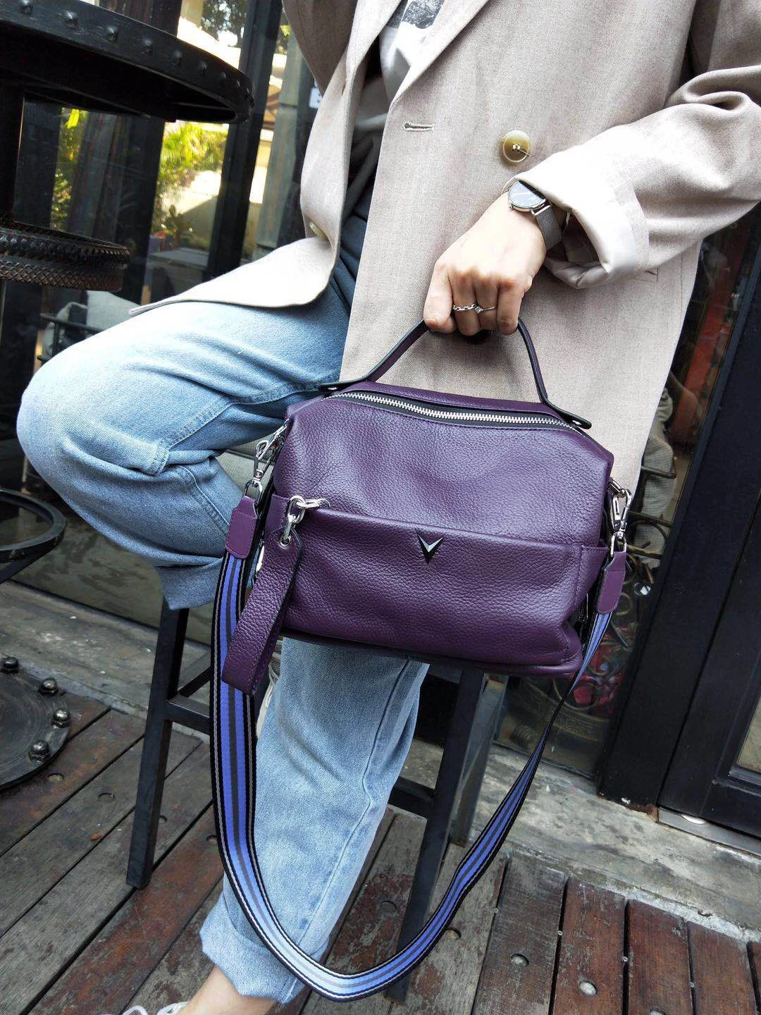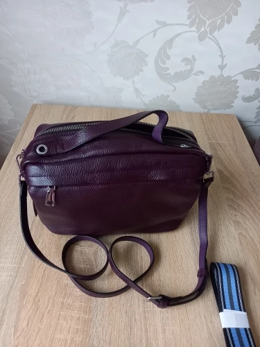 Сумка понравилась,на ощупь кожа,все идеально, в носке видно будет. Больше чем в описании! Я думала сумка поменьше. Цвет фиолетовый на солнце яркий, в тени какой-то бордовый.