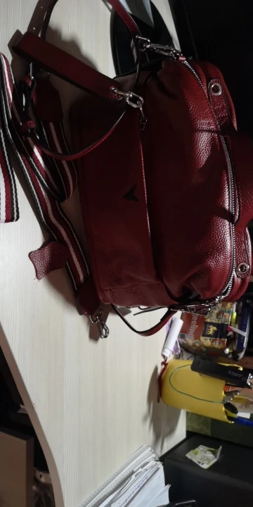 Сумка не бордовая как кажется на фото, а ярко красная. Сумка классная, очень вместительная, не смотря на свои размеры. Сшита из натуральной кожи, в этот же день как был сделан заказ. Отслеживался заказ полностью. Единственный минус--это затхлый запах. Подумаю как это исправить.