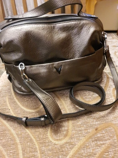 Сумка шикарная, выглядит дорого, запах есть, но думаю выветрится, цвет бронза, очень понравилась, рекомендую, увидев в магазине, обязательно купила бы, размер хороший, чуть поуже бы, но так тоже супер, качество также замечательное, цвет шикарный