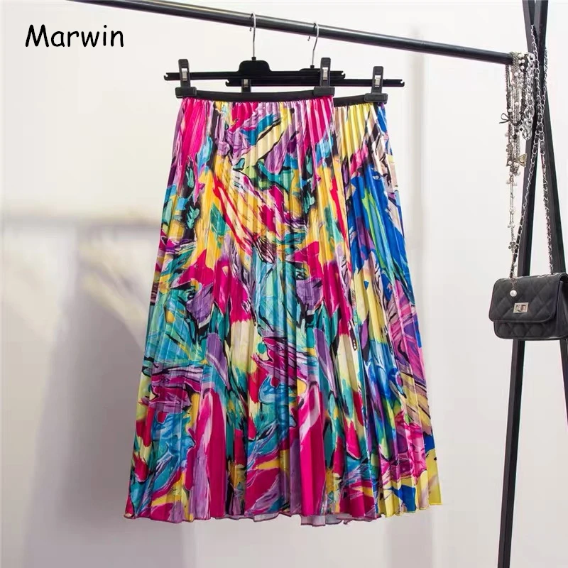 Юбка женская трапециевидная с цветочным принтом Marwin, юбка до середины икры для отпуска в европейском стиле, весна 2019